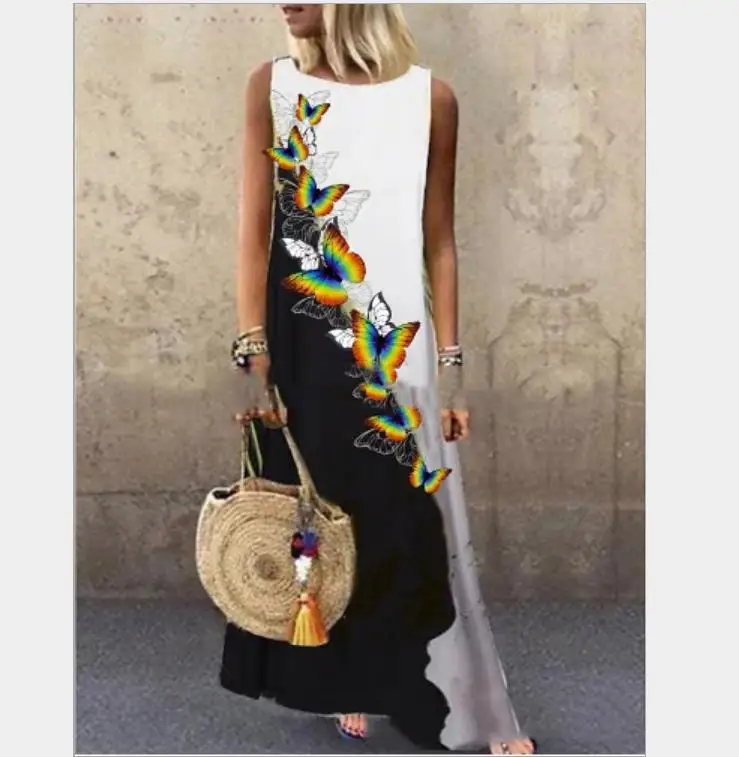 Sundress Women Summer Dress 2020 Printing Sexy Dress Midi Plus Size Casual Linen Loose Sleeveless printed Long Maxi Dress