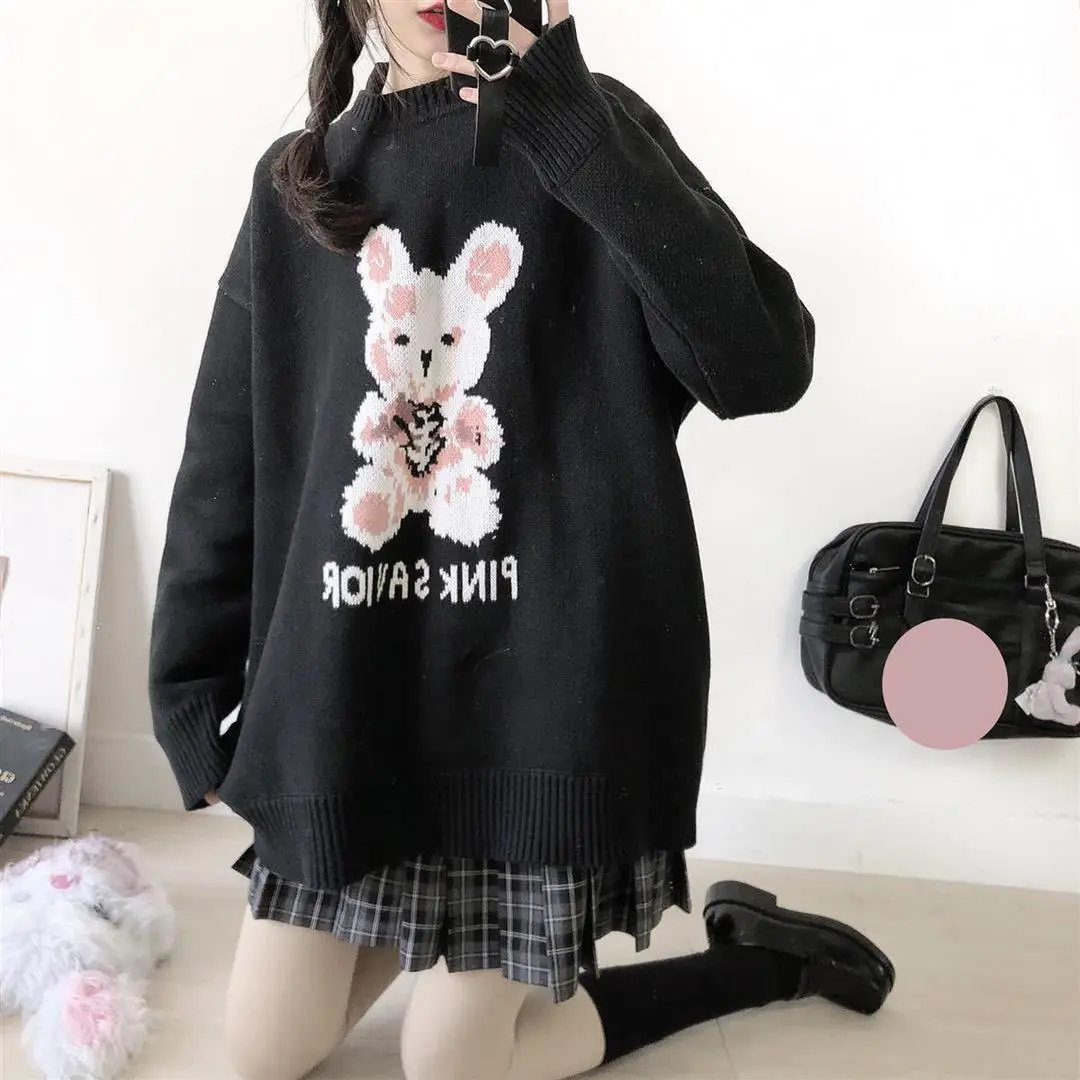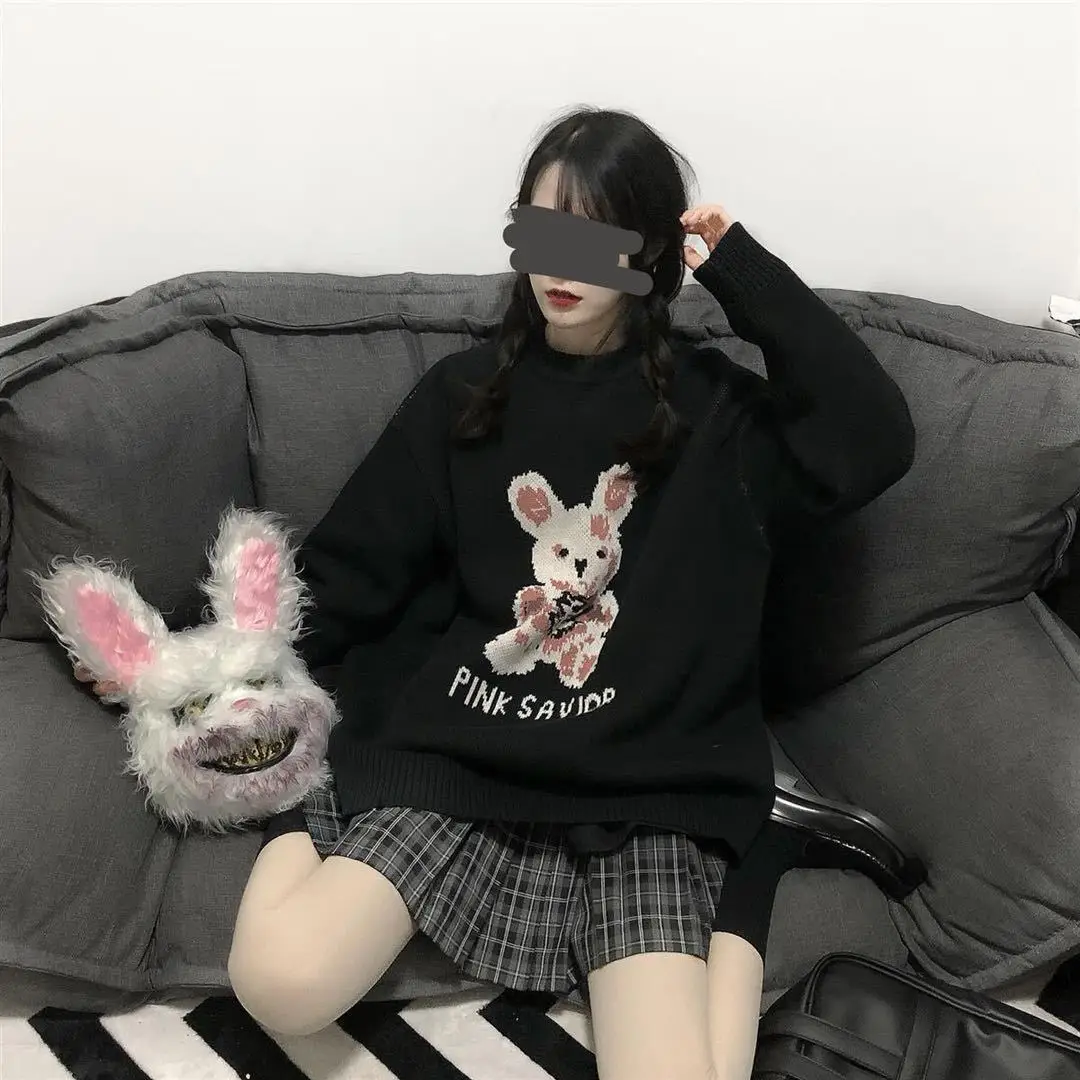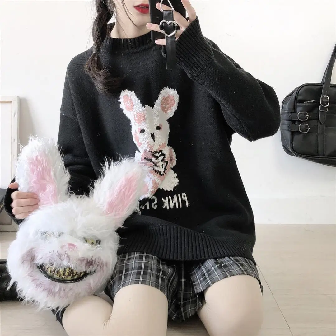 Sweater oversize Autumn Winter Harajuku bunny Knitting korean fashion Y2K Women’s sweaters Loose Pullover Gothic punk clothes