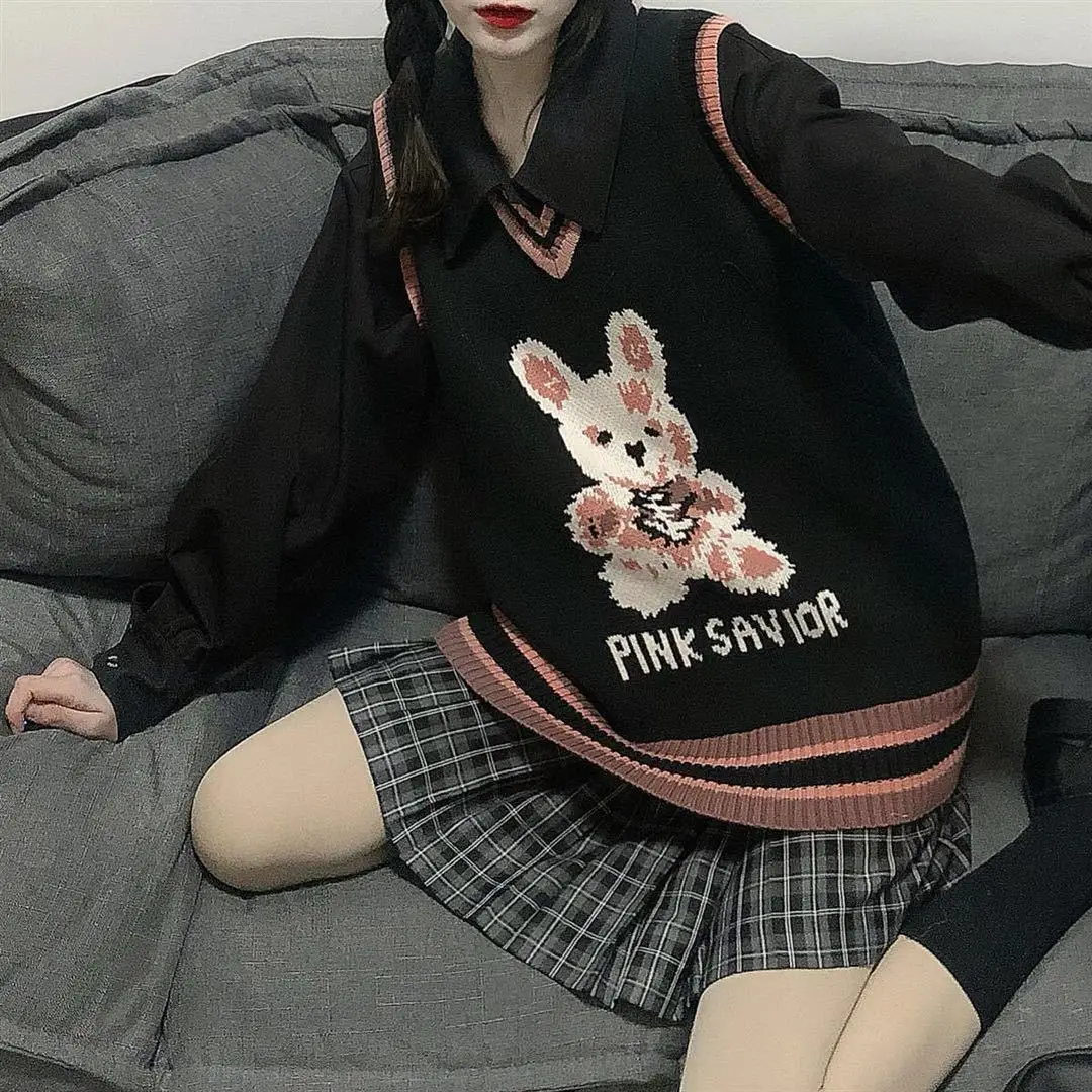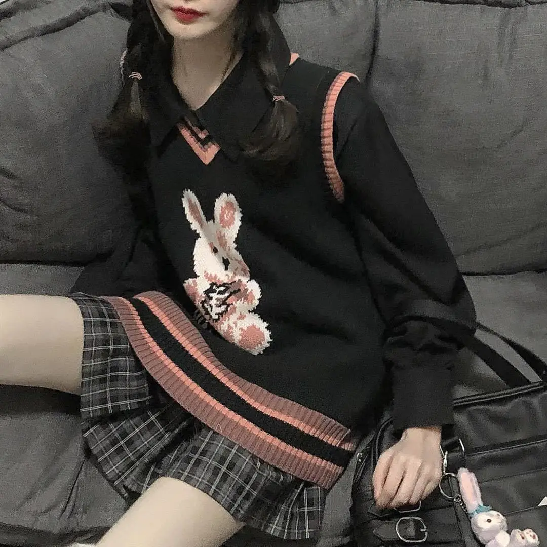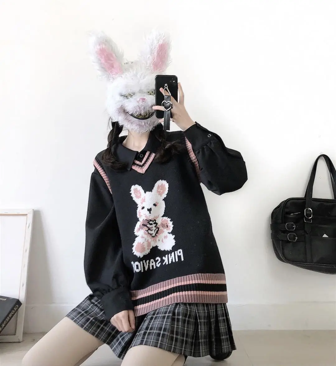Sweater oversize Autumn Winter Harajuku bunny Knitting korean fashion Y2K Women’s sweaters Loose Pullover Gothic punk clothes