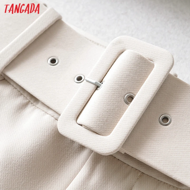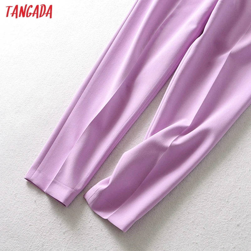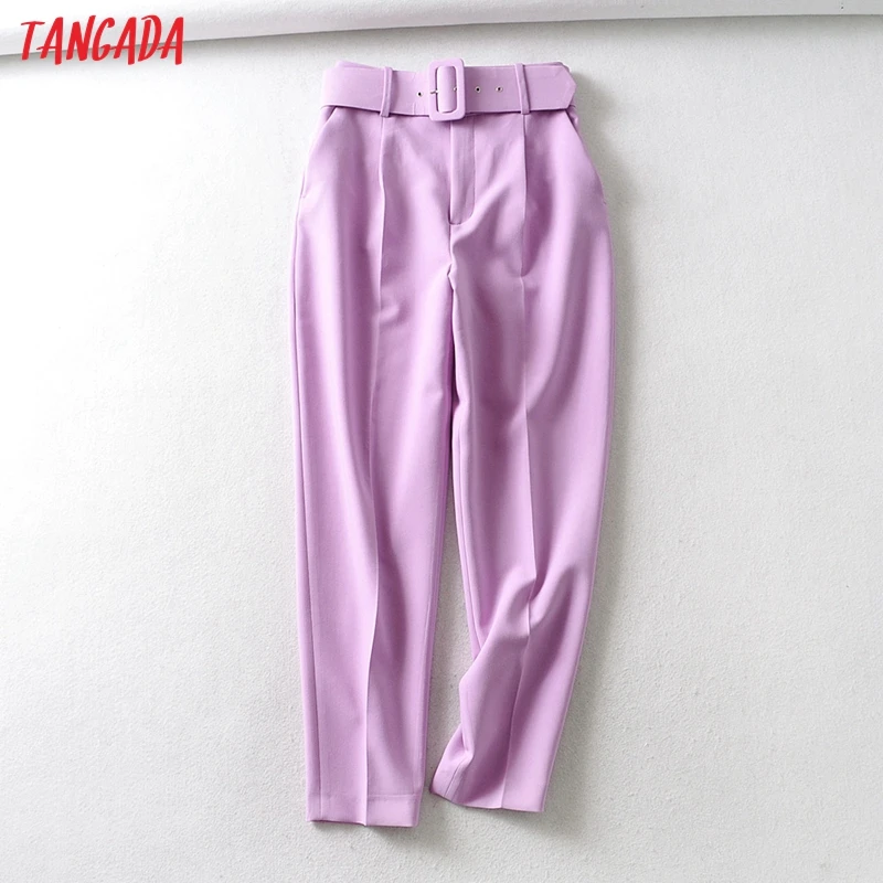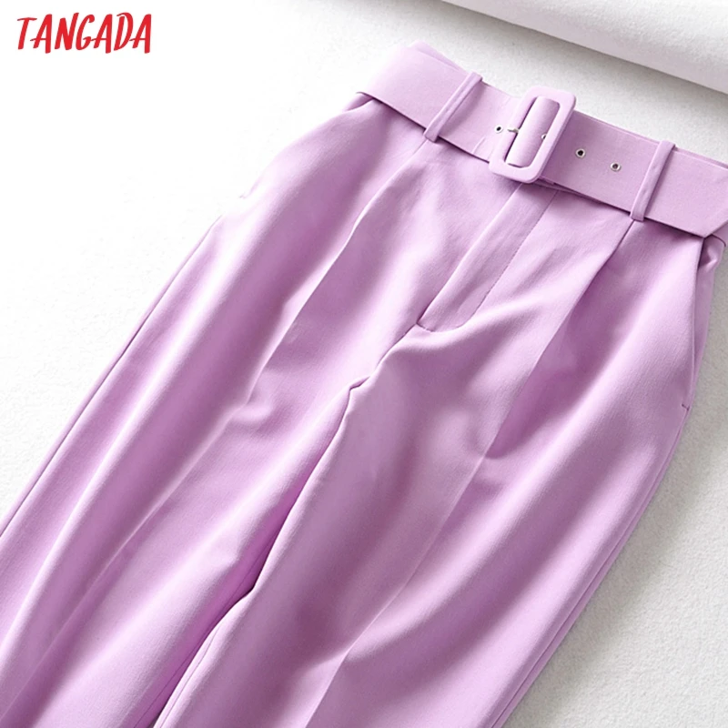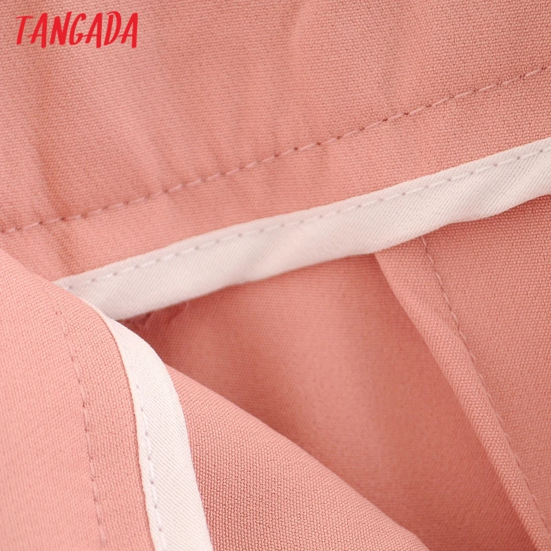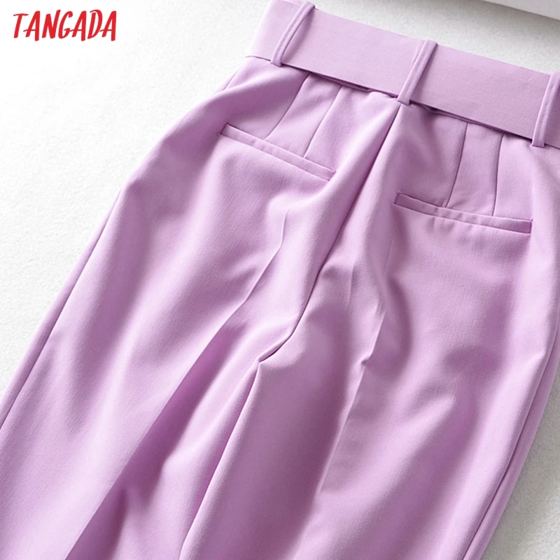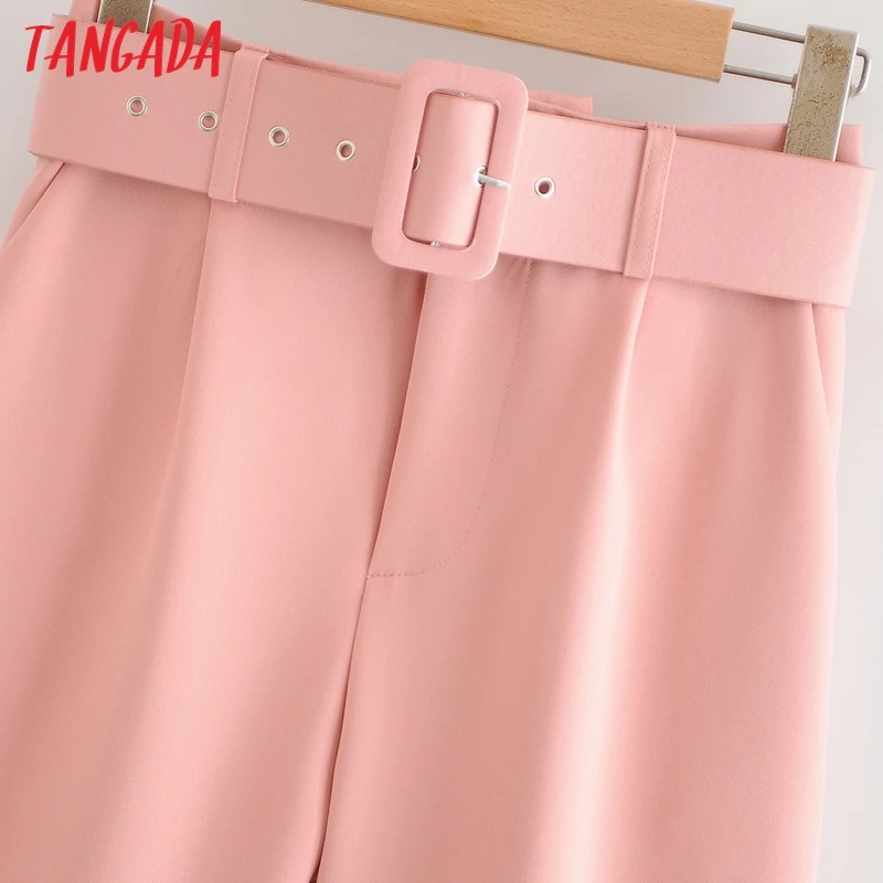 Tangada black suit pants woman high waist pants sashes pockets office ladies pants fashion middle aged pink yellow pants 6A22