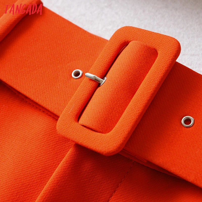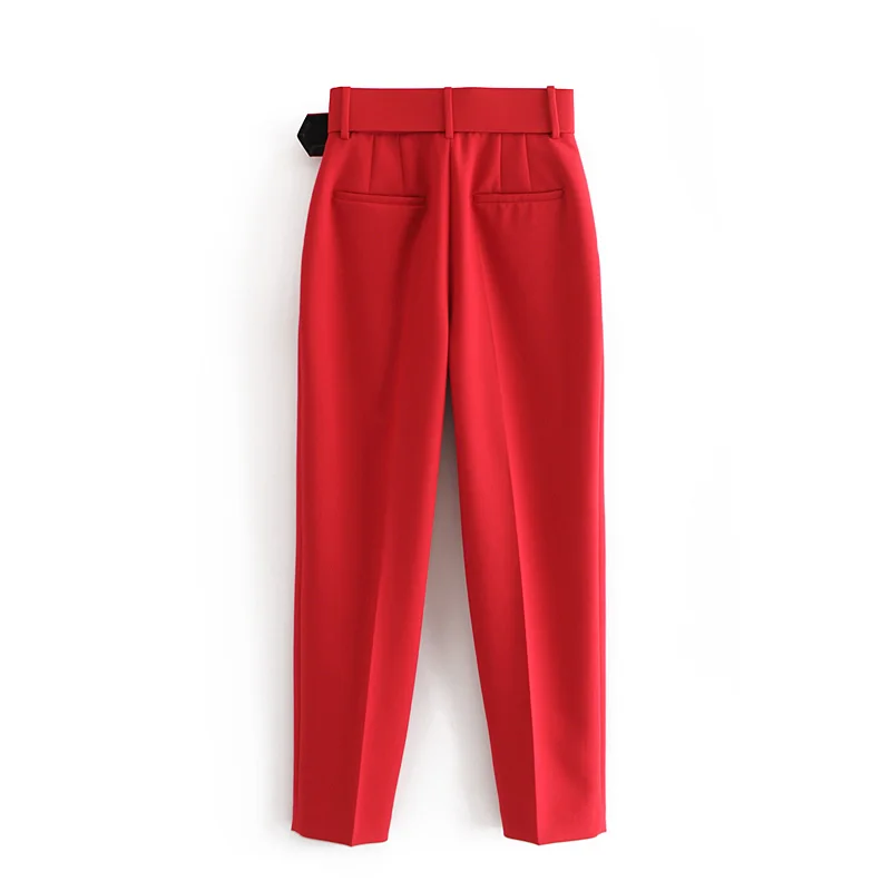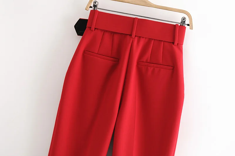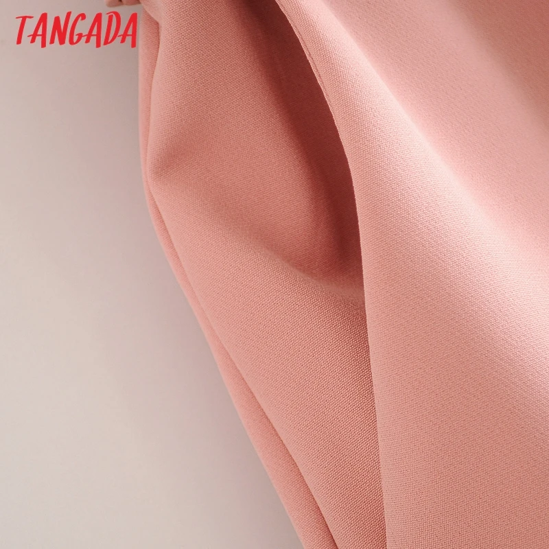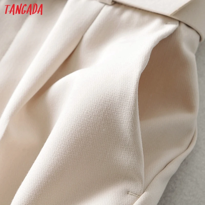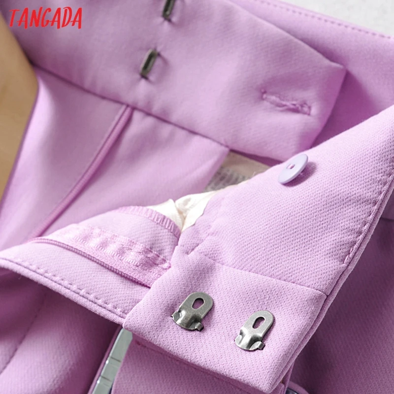 Tangada black suit pants woman high waist pants sashes pockets office ladies pants fashion middle aged pink yellow pants 6A22