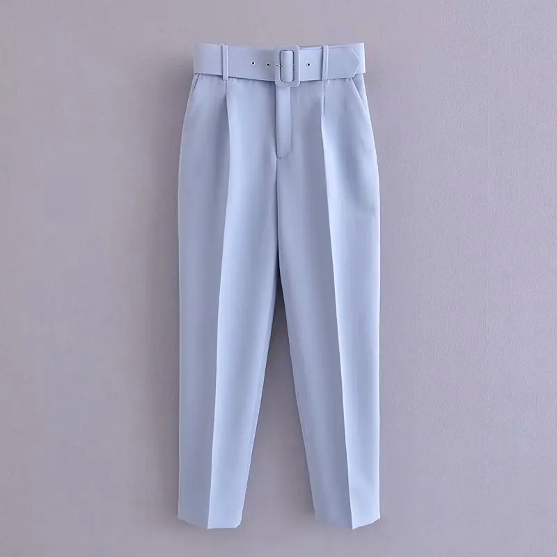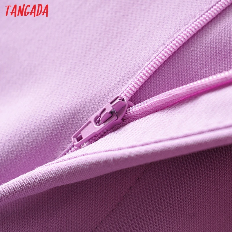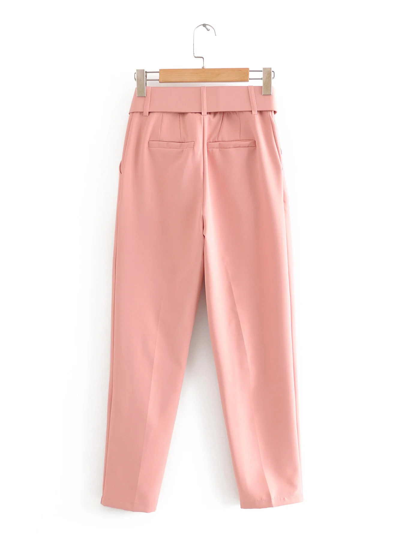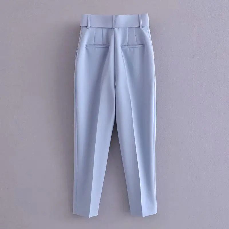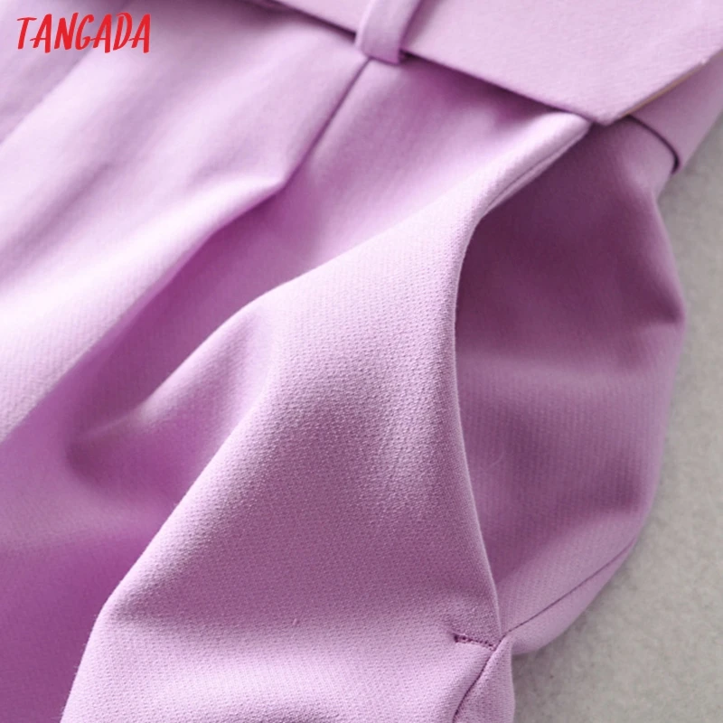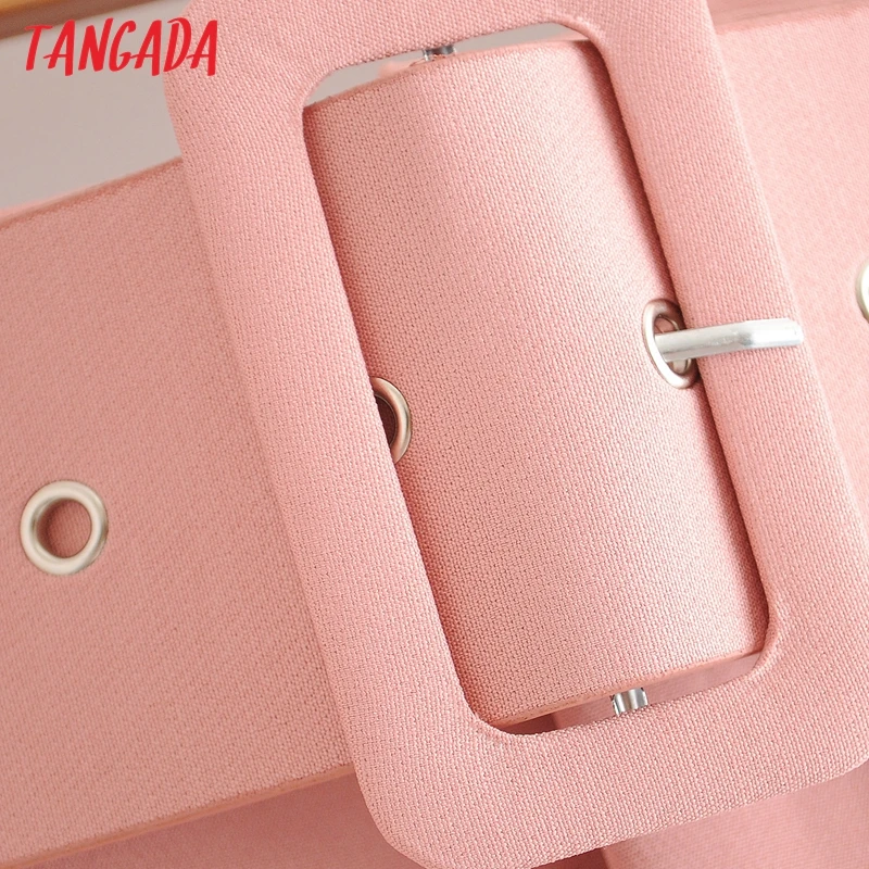 Tangada black suit pants woman high waist pants sashes pockets office ladies pants fashion middle aged pink yellow pants 6A22