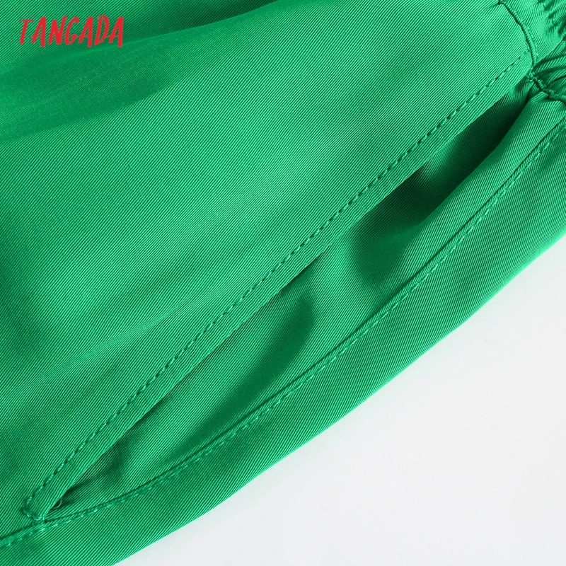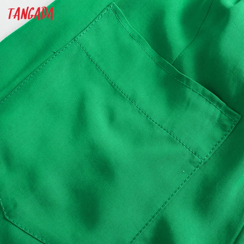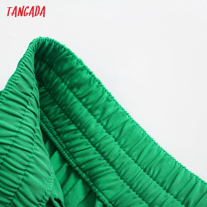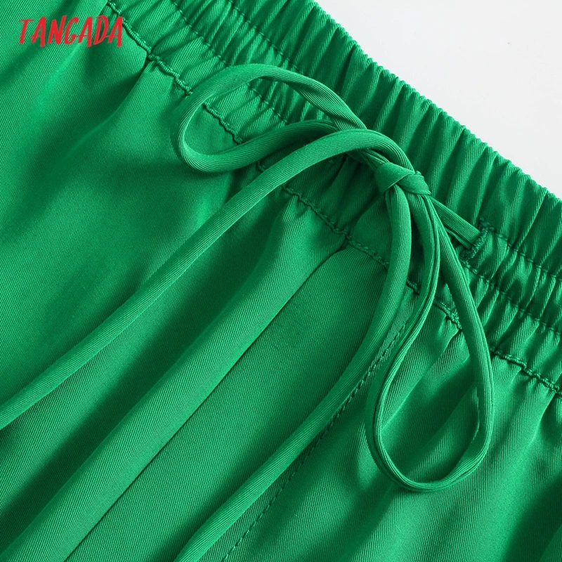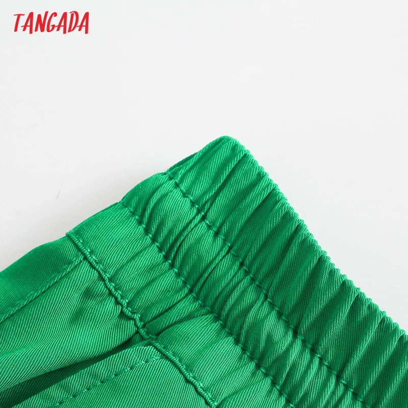 Tangada Fashion Women Green Casual Long Pants Trousers Vintage Style High Street Lady Pants Pantalon 5Z68