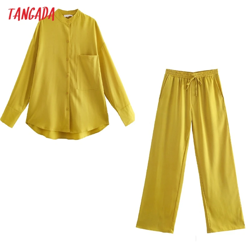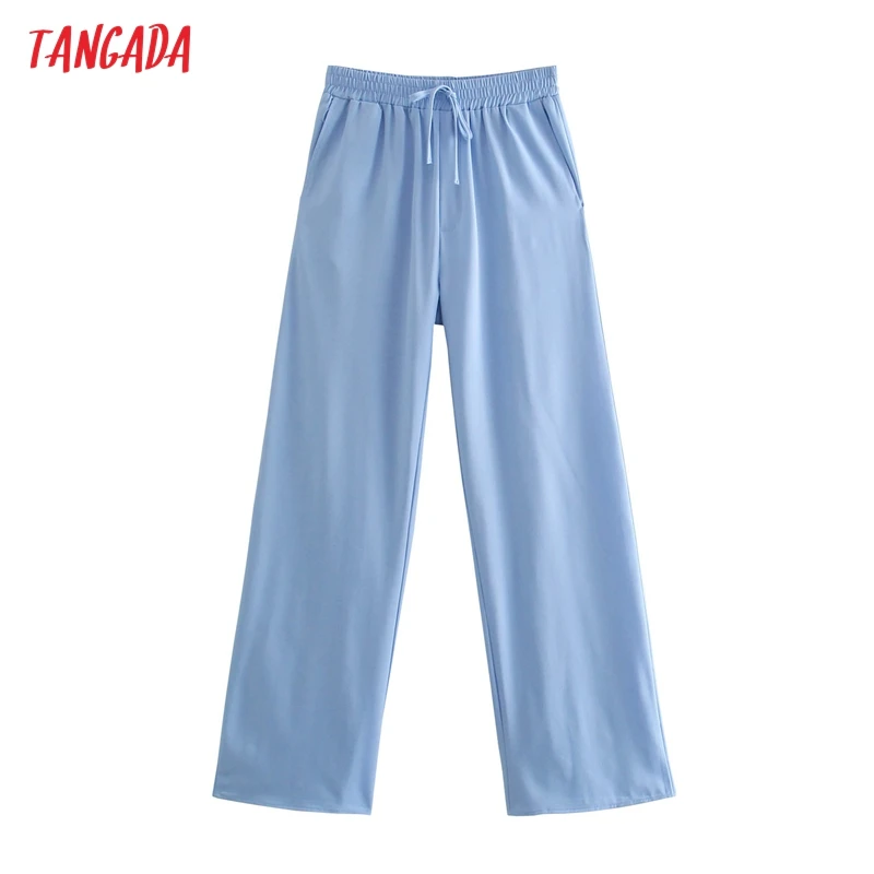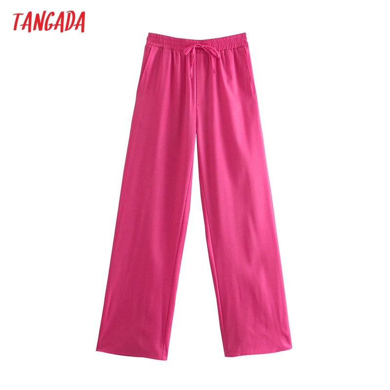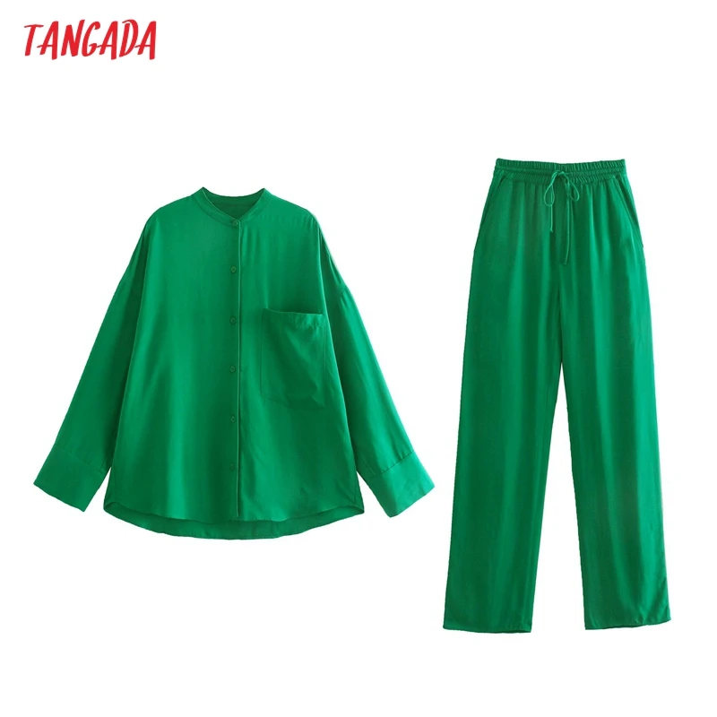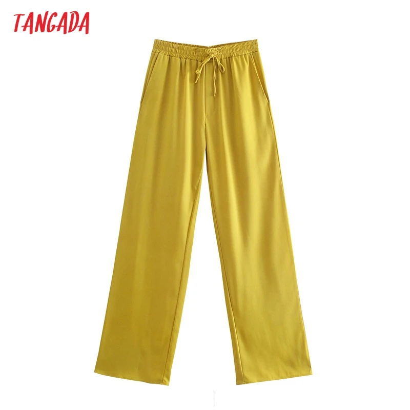 Tangada Fashion Women Green Casual Long Pants Trousers Vintage Style High Street Lady Pants Pantalon 5Z68