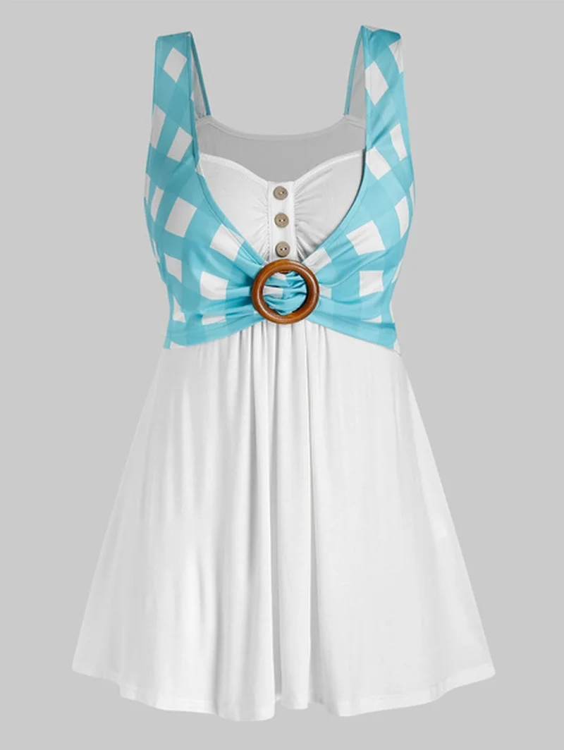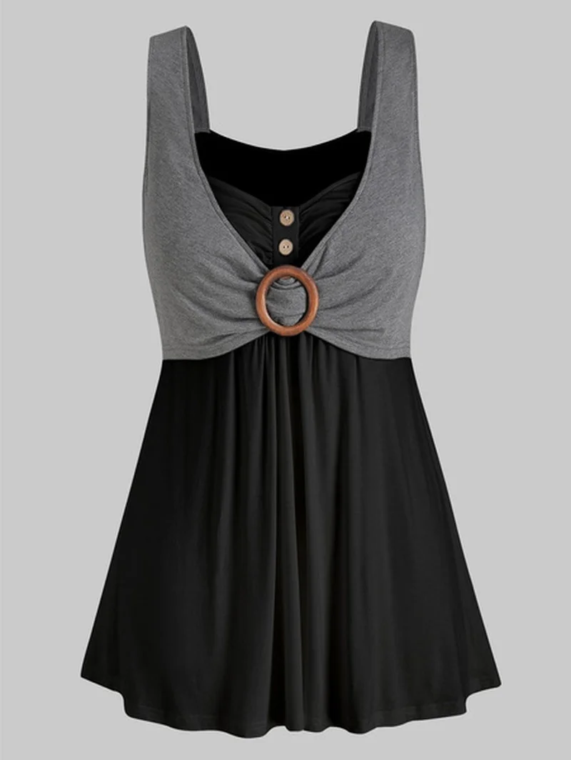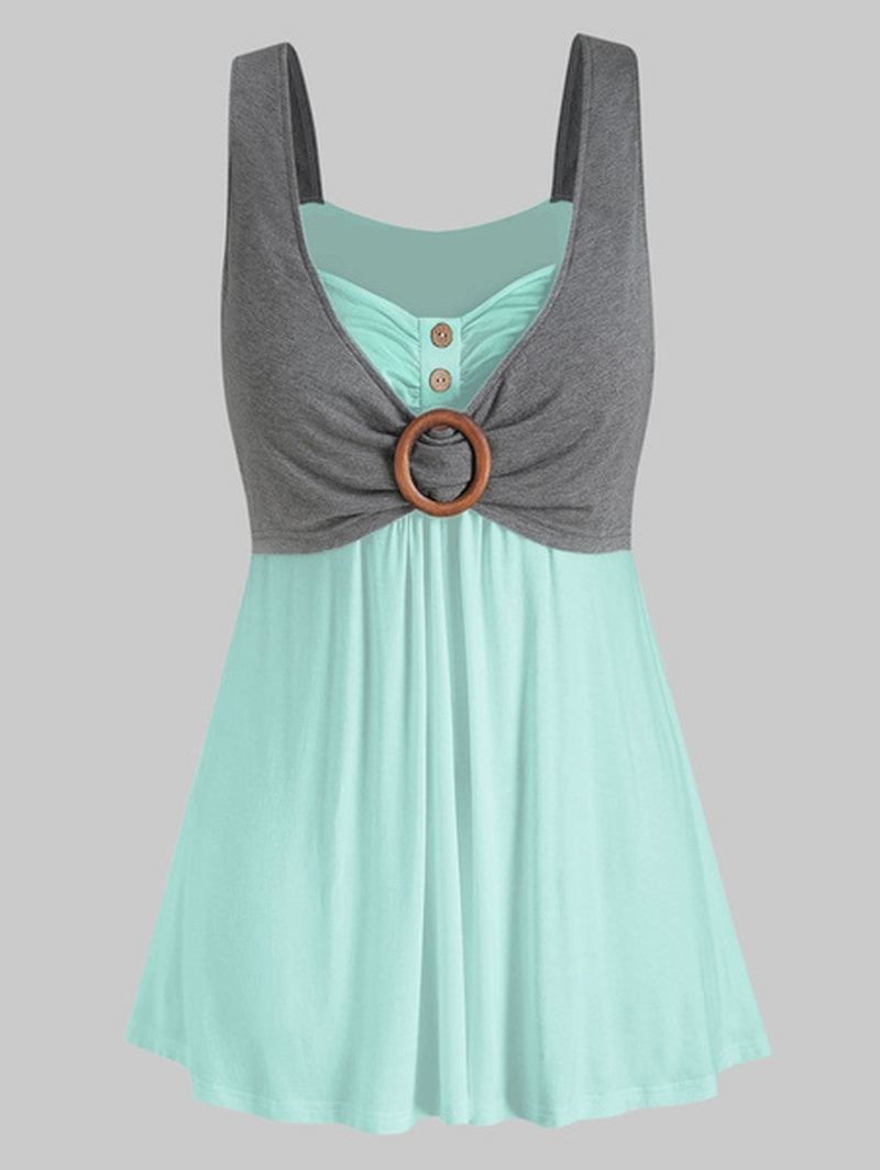 Tank Tops Women Fake 2 pieces Summer Button Detail Tops Shirts Vest