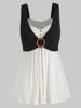 Tank Top Women Fake Two piece Button Detail Shirts Summer Ladies Casual Sleeveless Loose Shirt Tops Black White