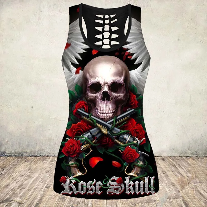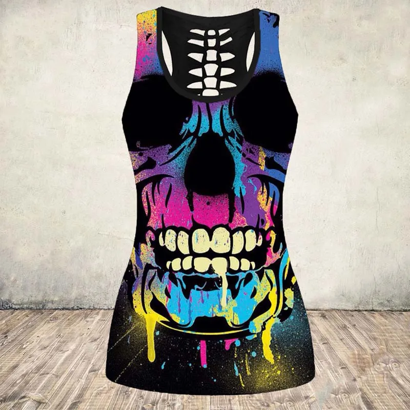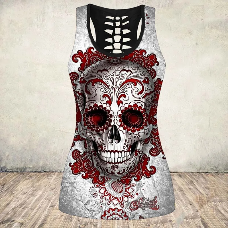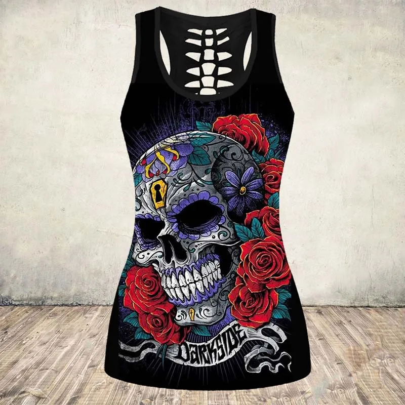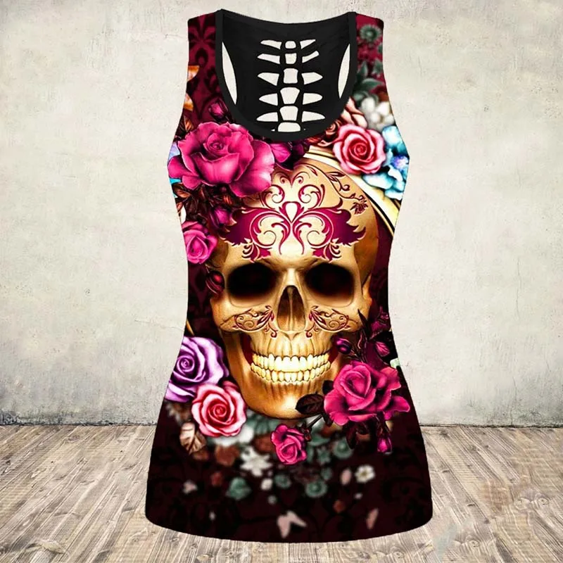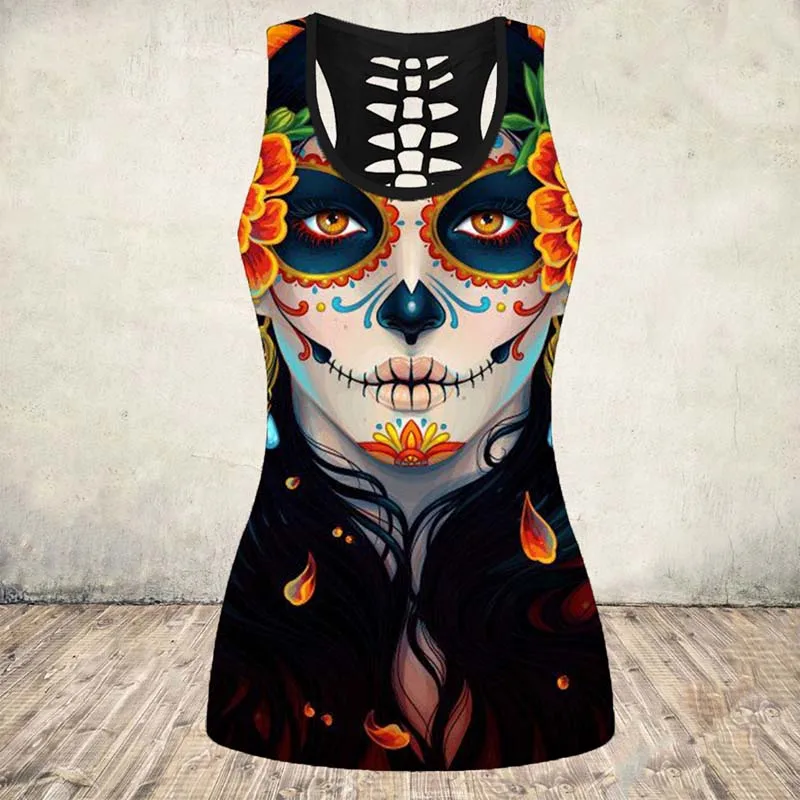 Tank Tops Women 3D Skull Printed Cut Out Back Tshirt Halloween Gothic Sleeveless Top Gym Workout Vest Fitness Shirt Tees