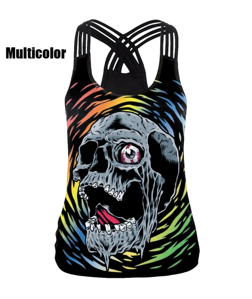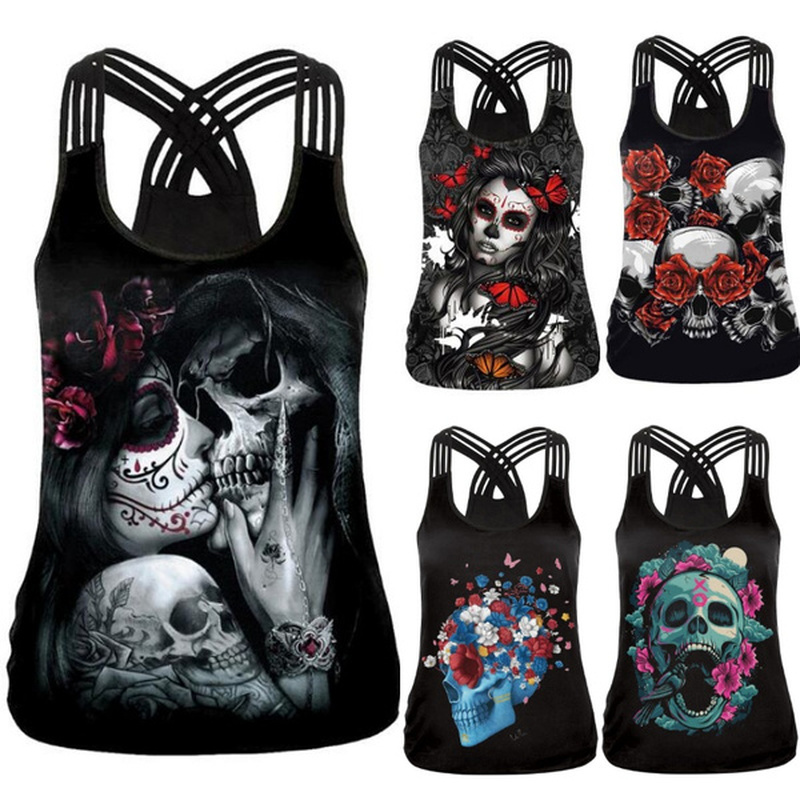 Tank Tops Women Skull Print Sleeveless Shirts Workout Gym Fitness Vest Graphic Shirts Tees