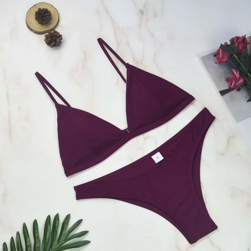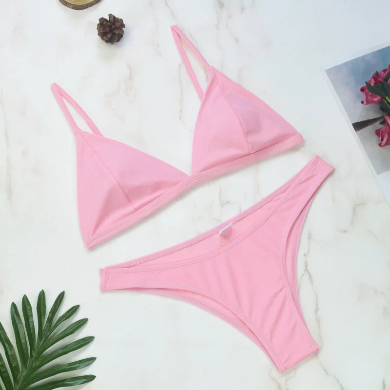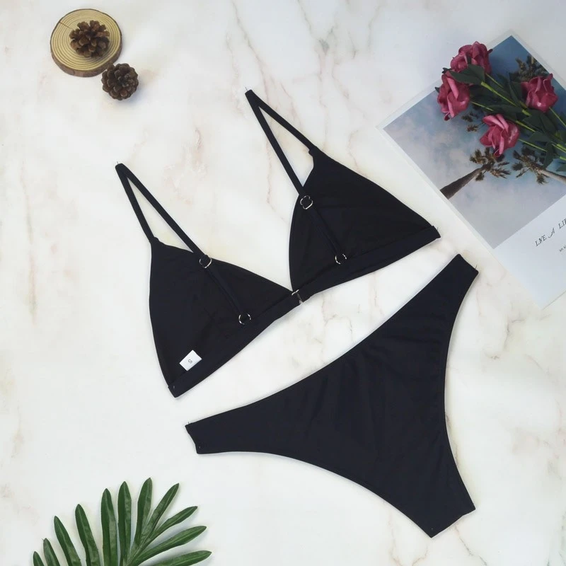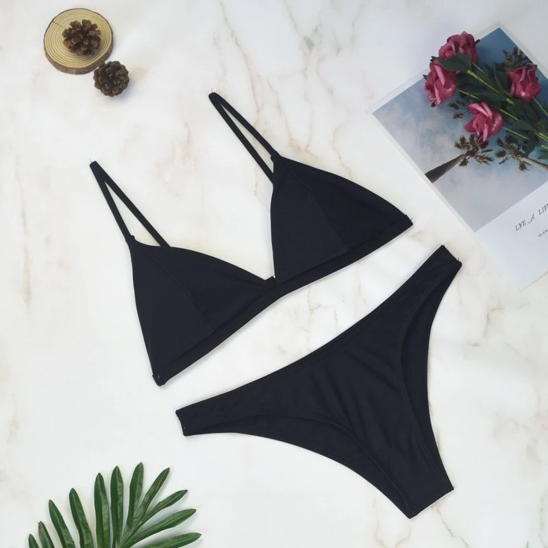 Thong Bikinis 2022 Women Sexy Swimwear Female Swimsuits Solid Bikini set Black Brazilian Bathing Suit Beachwear