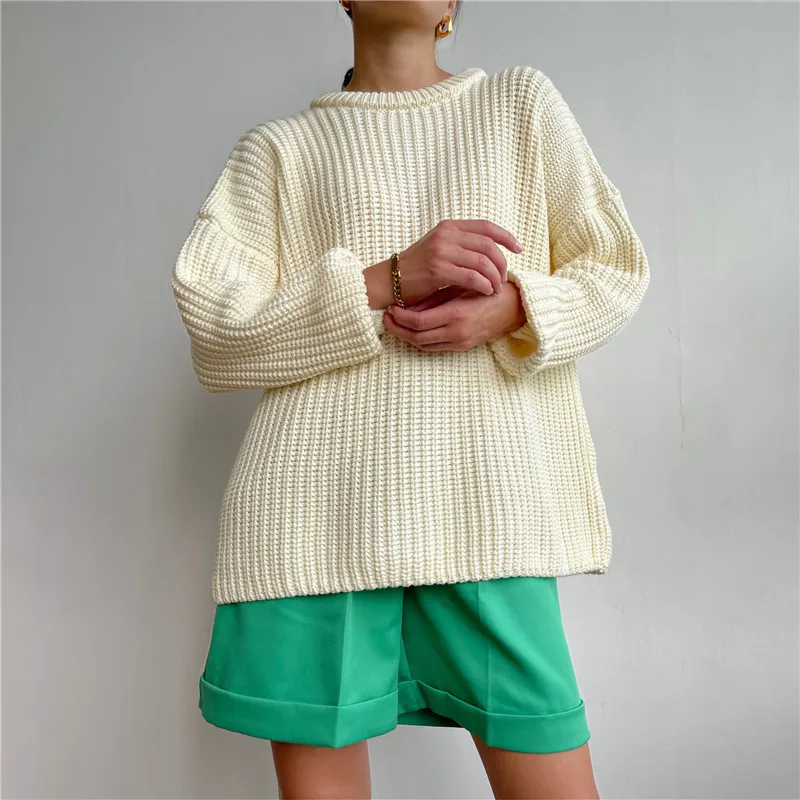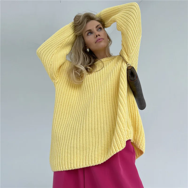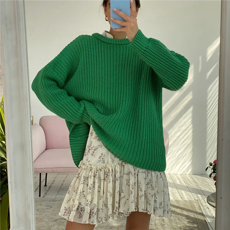 Tossy Autumn Casual Waffle Knit Oversized Green Sweater Women Long Sleeve Loose Thickening Pullovers Female Solid Knitted Tops