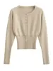 Tossy Autumn Fashion Knitwear Cardigan Top Women’s Ribbed Patchwork Slim Casual Cropped Inner Top Women’s Knit Cardigan Outwear