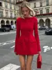 Tossy Autumn Female Tee Bow Mini Dress Slim Fashion Patchwork High Waist Elegant Party Dress Women’s Solid Y2k Bodycon Dress New