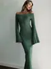 Tossy Autumn Knit Ribbed Long Dress Women Off-Shoulder Slim High Waist Patchwork Elegant Party Dress Female Maxi Dress Knitwear