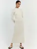 Tossy Autumn Ruffled Knitwear Long Dress Female Long Sleeve Loose Ribbed High Waist Maxi Dress Streetwear Knit Solid Women Dress