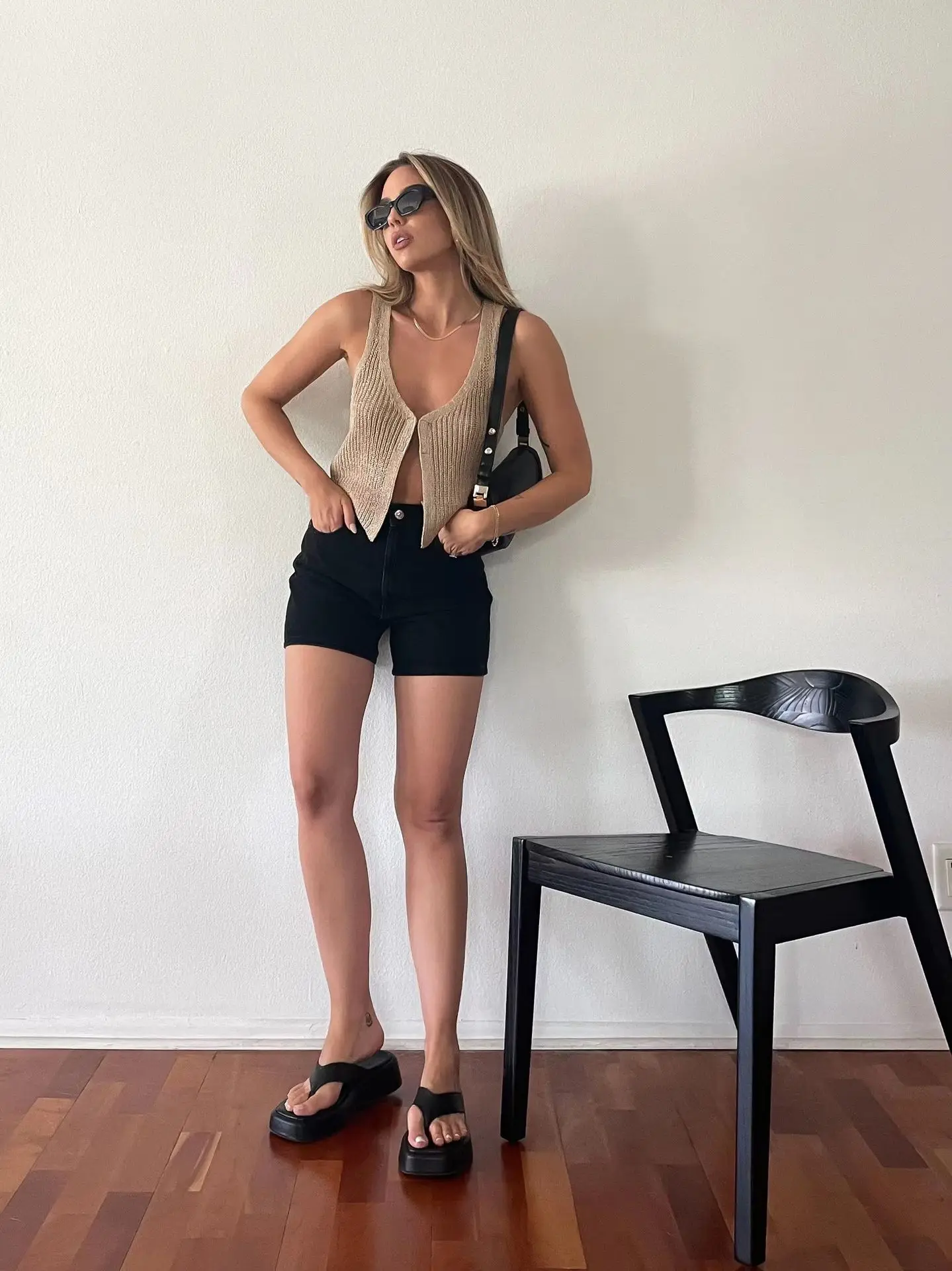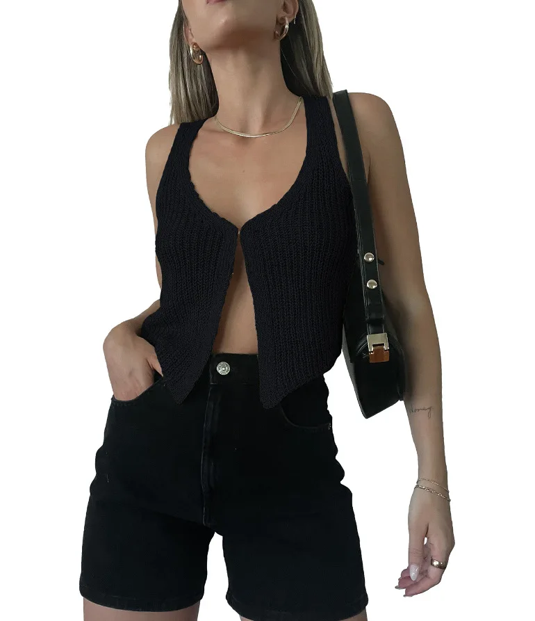 Tossy Backless Knit Slim Cardigan Y2k Top For Women Sexy Sleeveless Knitwear Coat Tank Top Patchwork Casual Ladies Cardigan