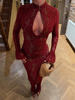 Tossy Black Lace Sexy Maxi Dress For Women See-Through V-Neck Slim Printed Hollow Out Long Sleeve Party Dress Ladies Long Dress