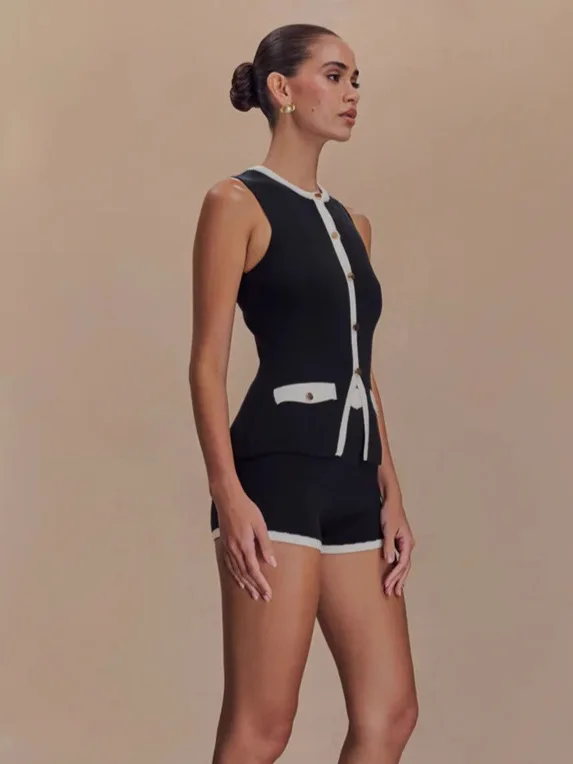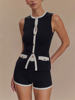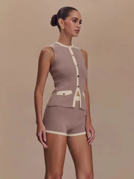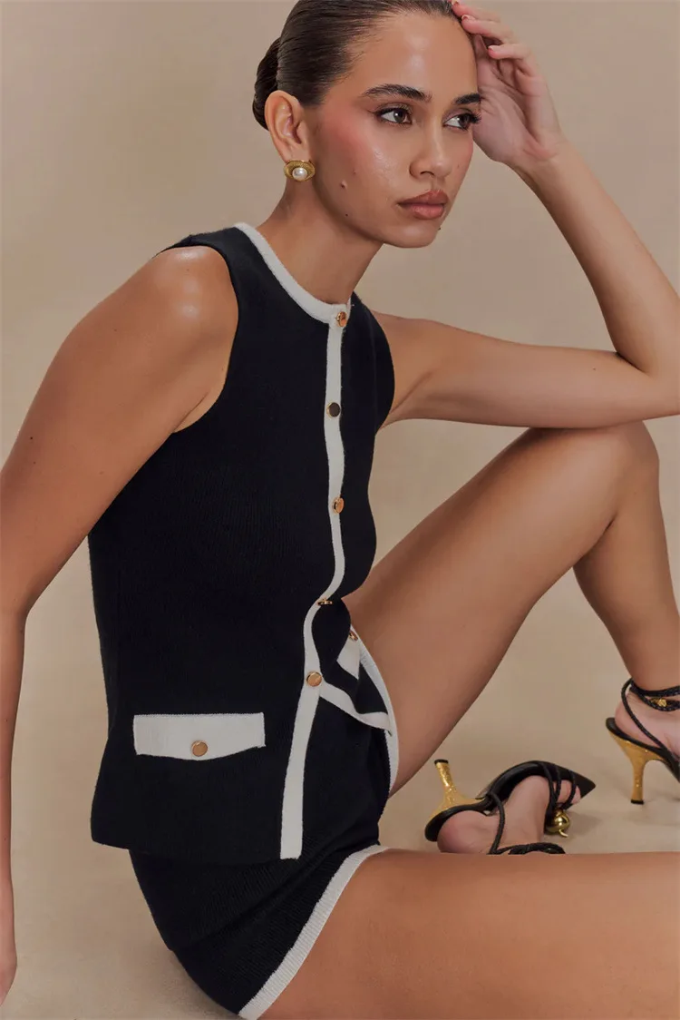 Tossy Elegant Knit Cardigan Vestidos Female Pocket Slim Contrast High Waist Patchwork Sleeveless Top Knitwear Women’s Outwear