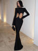 Tossy Fashion Hollow Slim Long Dress Summer Women’s Sexy Waist Solid Color Long Sleeve Collage Elegant Evening Dress Long Dress