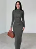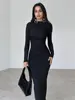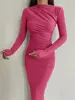 Tossy Fashion Pleated Autumn Dress Patchwork Elegant Women Long Sleeve Solid Vestidos Slim High Waist Bodycon Maxi Dress 2023