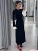 Tossy Female Ruffled Knitwear Long Dress Fashion Patchwork Slim Contrast Lapel Casual Party Dress Gown Women’s Knit Maxi Dress