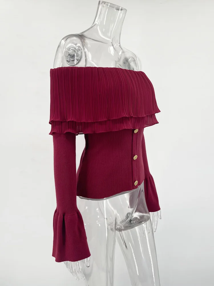 Tossy Knit Backless Sweater Pullover Female Patchwork Ribbed Off-Shoulder Slim Fashion Y2k Autumn Top Women’s Knitwear Pullover