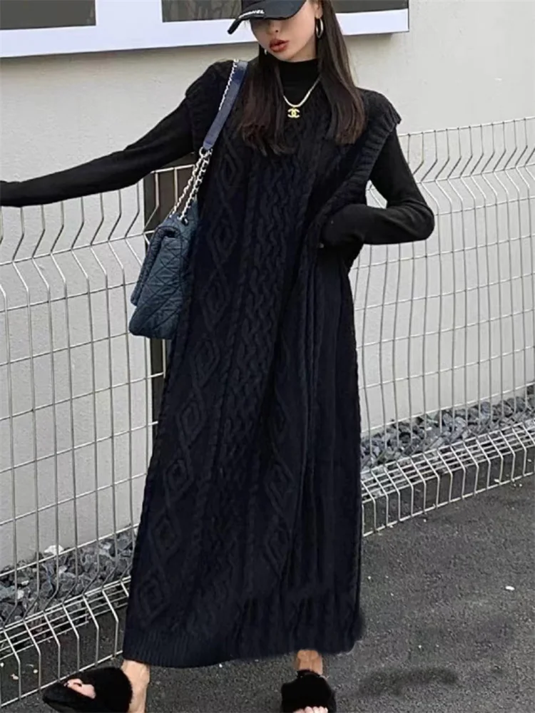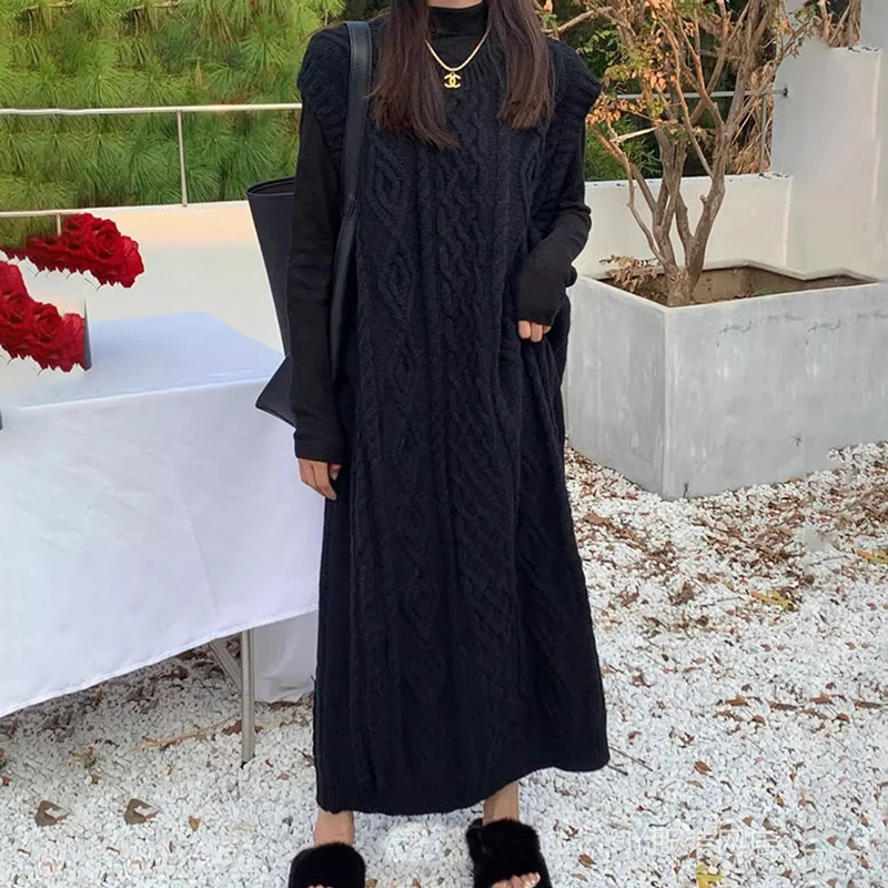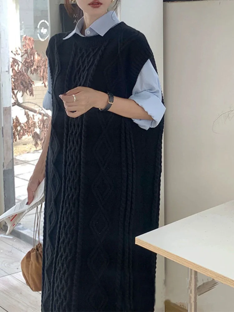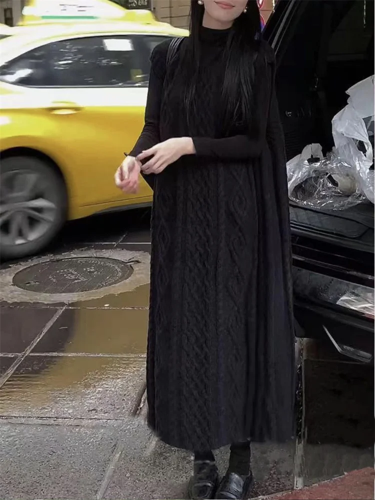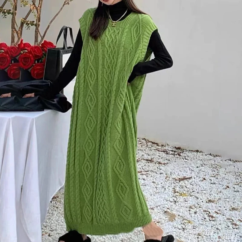 Tossy Knit Loose Patchwork Maxi Dress For Women Sleeveless High Waist Solid Elegant Ribbed Dress Streetwear Women Knitwear Dress