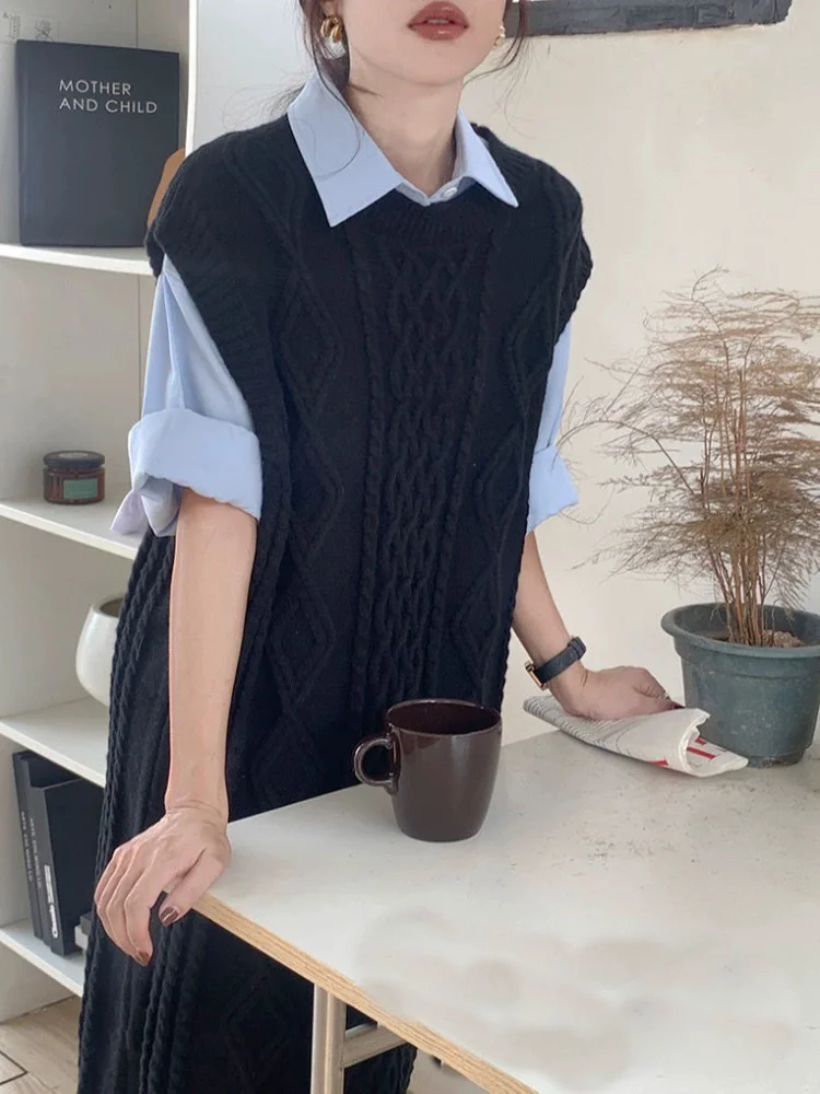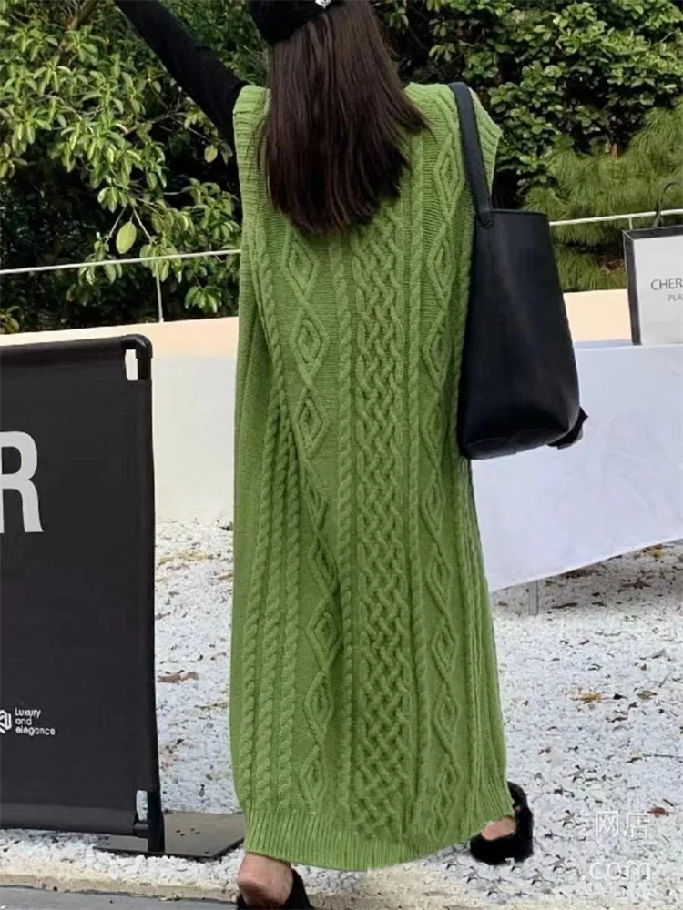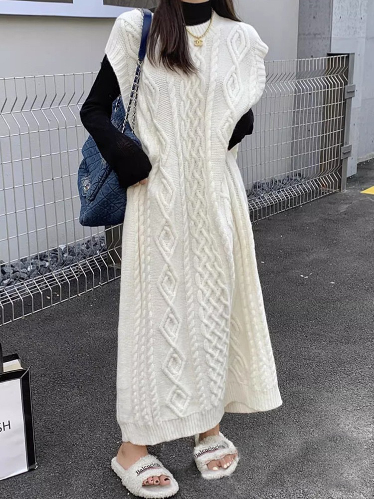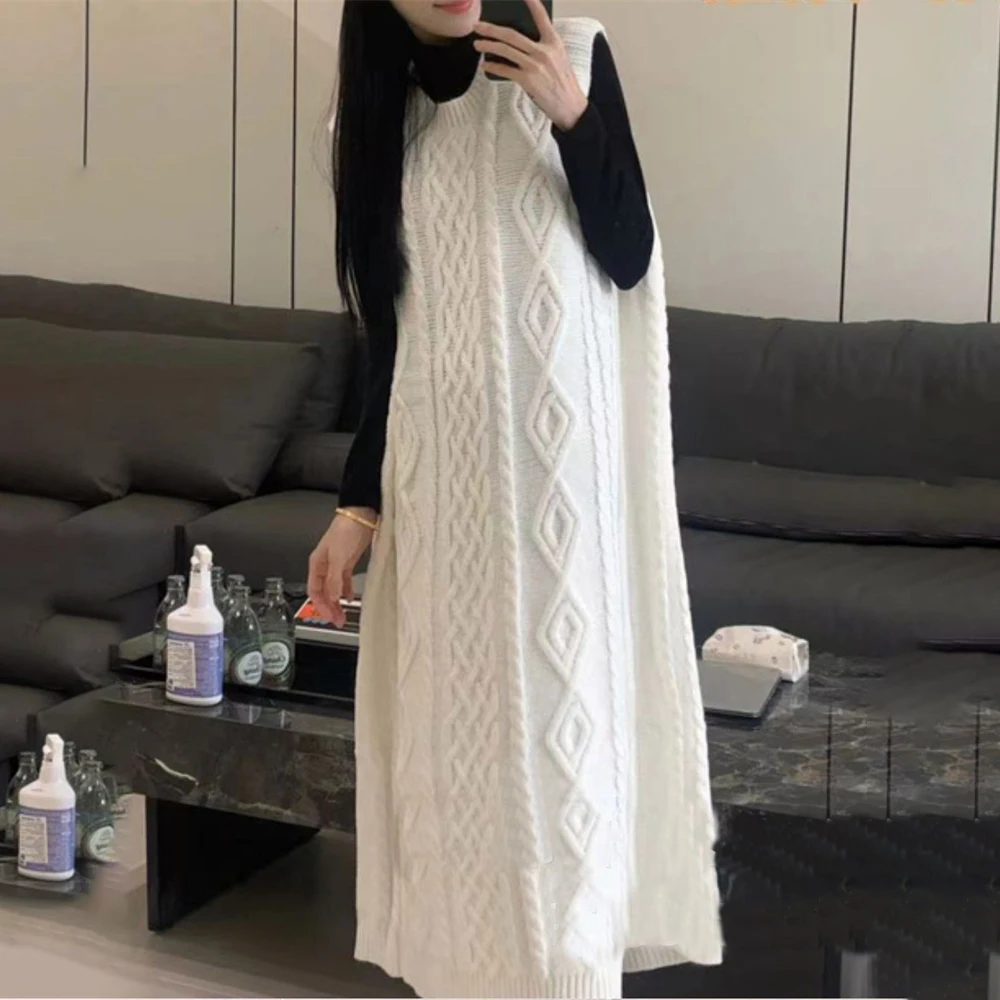 Tossy Knit Loose Patchwork Maxi Dress For Women Sleeveless High Waist Solid Elegant Ribbed Dress Streetwear Women Knitwear Dress