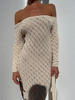 Tossy Knit Off-Shoulder Slim Maxi Dress For Women Patchwork Fashion Long Sleeve Hollow Out Knitwear Dress Summer Party Dress New
