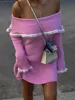 Tossy Knit Off-Shoulder Sweater Mini Dress Women’s Lace Patchwork Ribbed Slim Backless Elegant Party Dress Knitwear Mini Dress