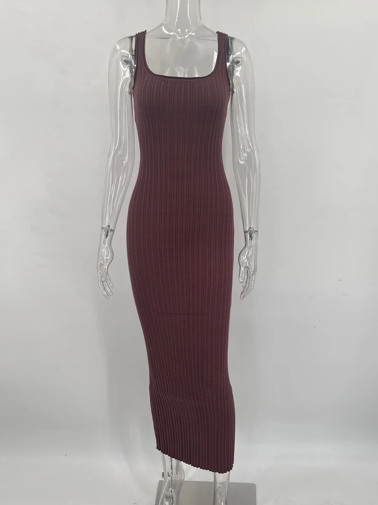 Tossy Knit Ribbed Slim Maxi Dress Female Backless Scoop Neck Fashion Elegant Party Looks Long Dress Patchwork Knitwear Dress