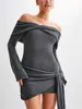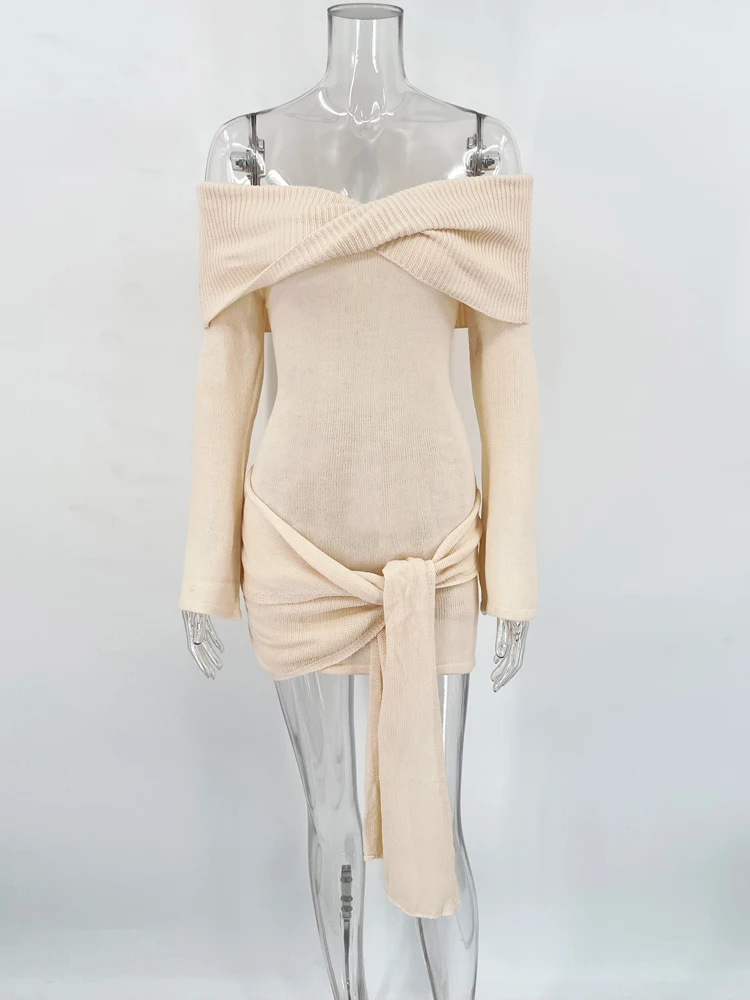 Tossy Knit Sweater Lace-Up Mini Dress Female Off-Shoulder Slim Patchwork Loose Twist Ribbed Knitwear Dress Women’s Party Dress