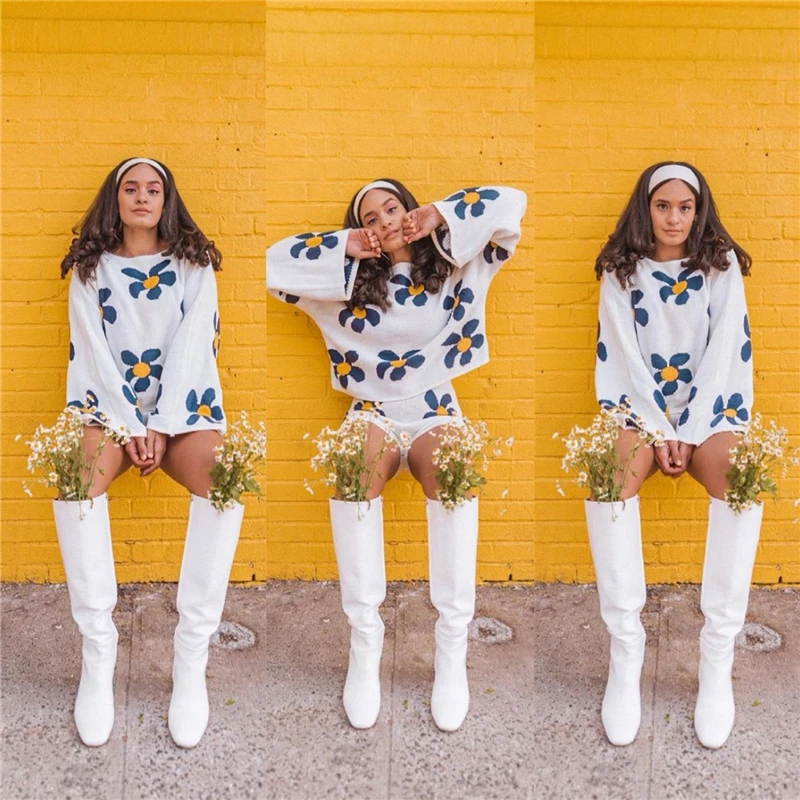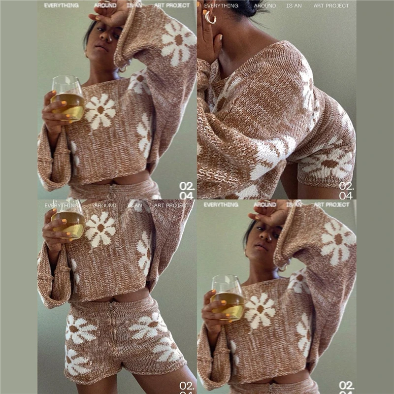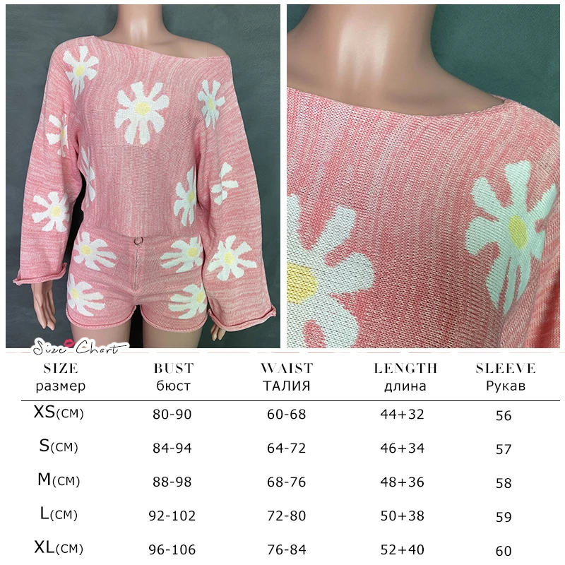 Tossy Knitted Women’s 2 Piece Sets Outfits Casual Pink Floral Sweet Oversized Sweater Suit With Shorts For Women 2021 New Tracksuit Plus Size