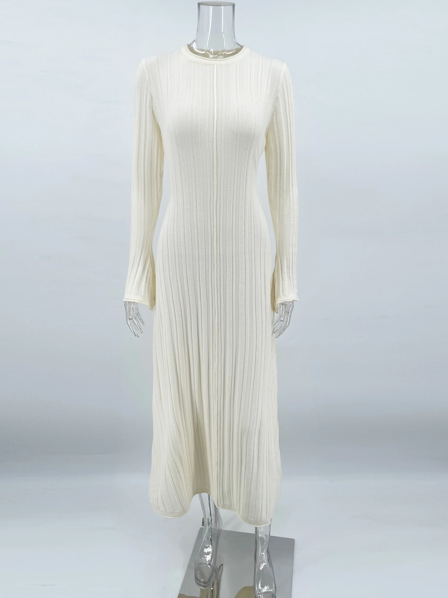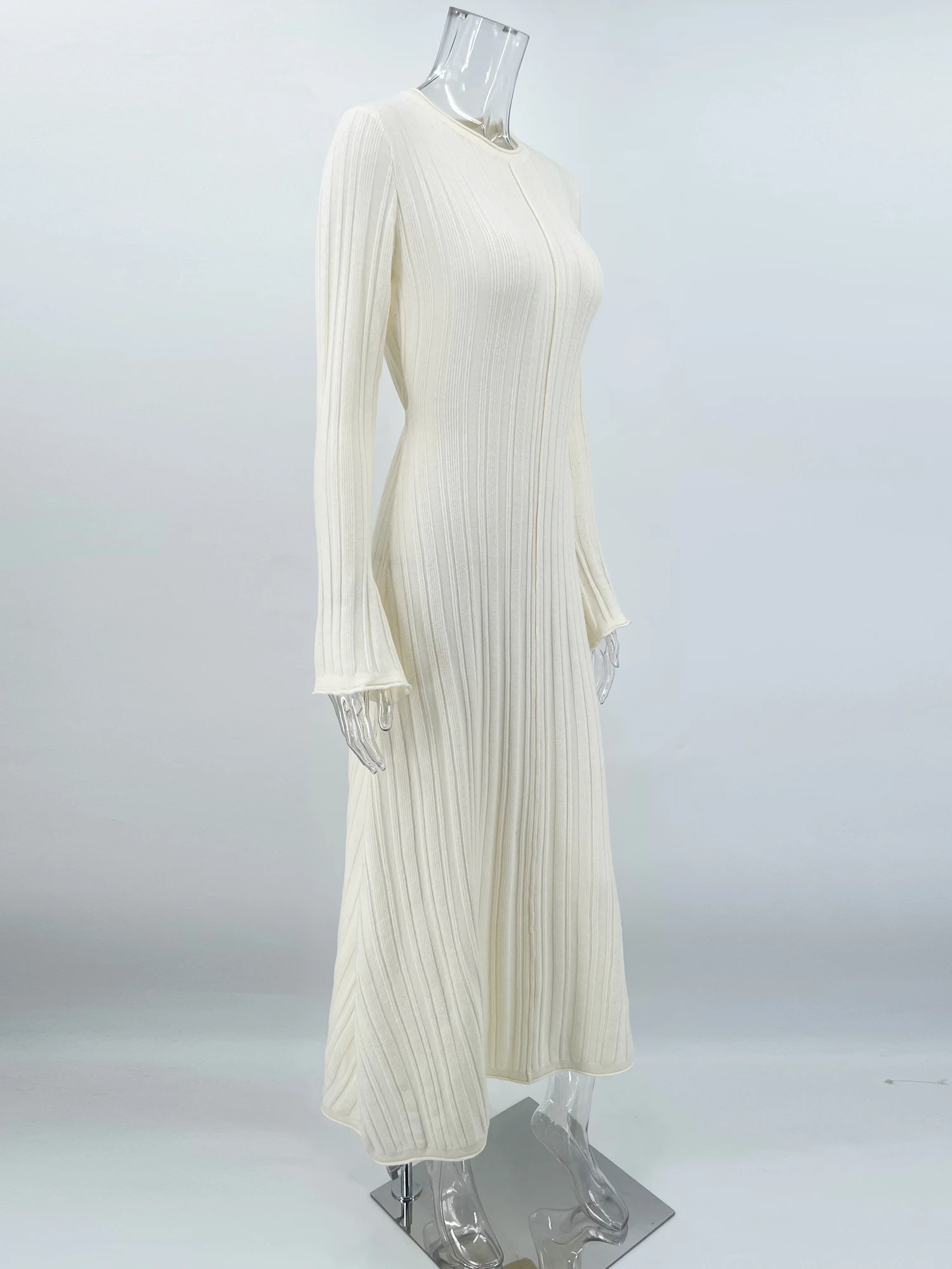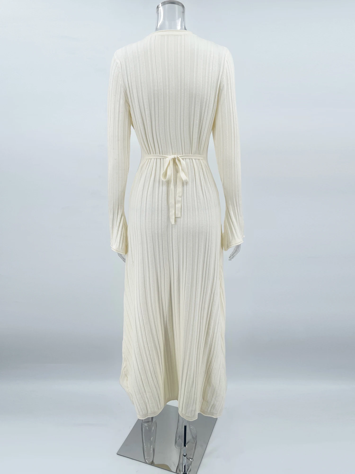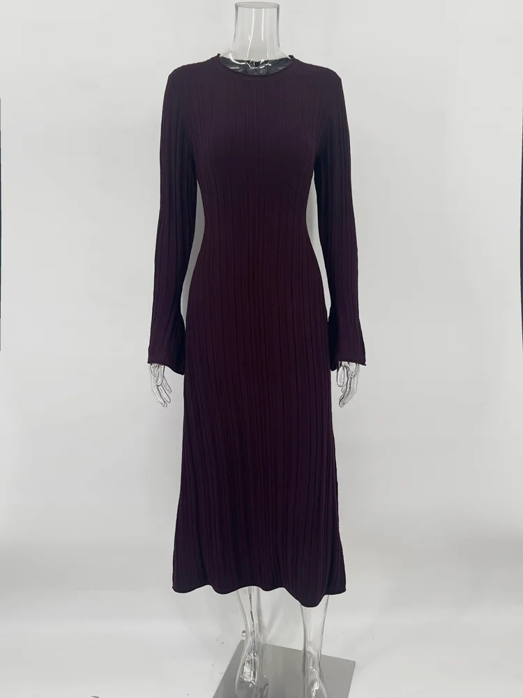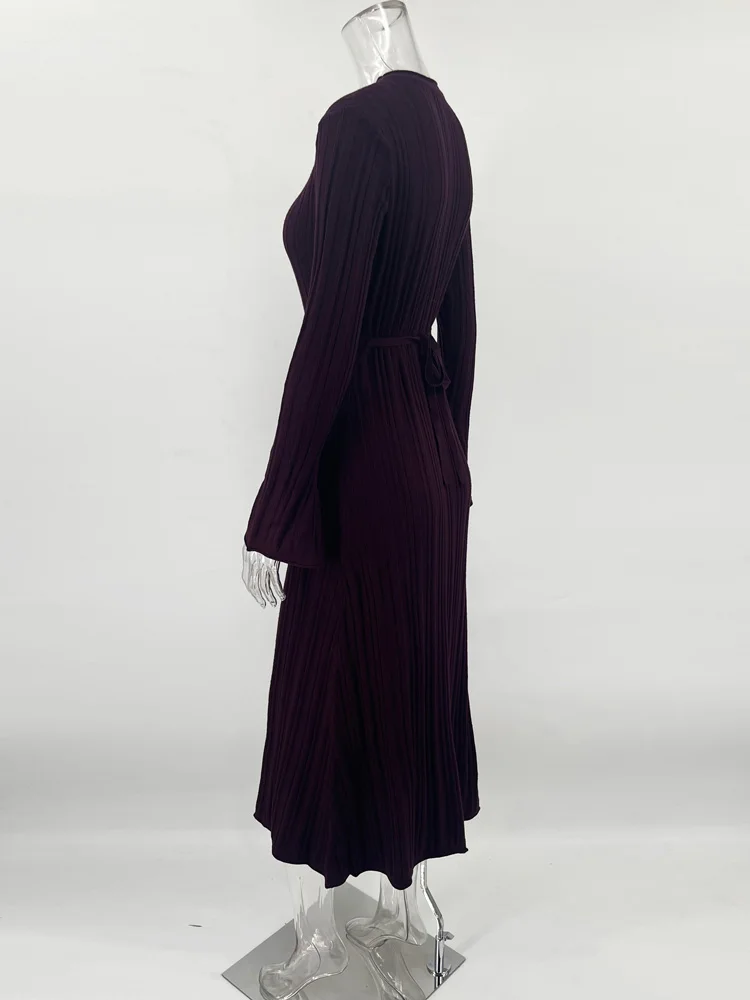 Tossy Knitwear Fashion Loose Maxi Dress Women Lace-Up High Waist Ribbed Long Sleeve Party Dress Female Knit Bandage Long Dress