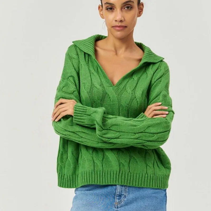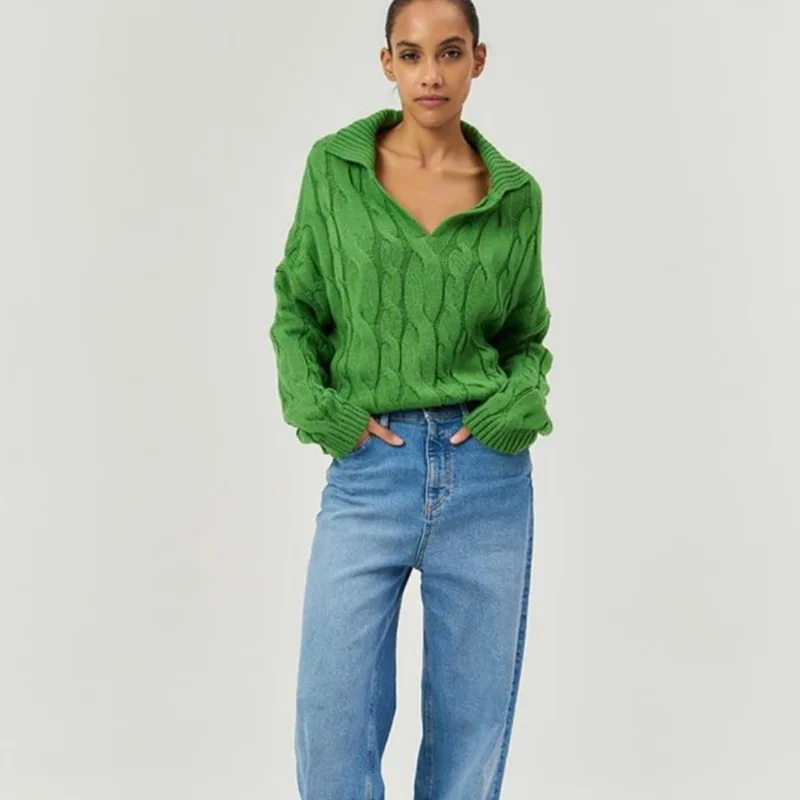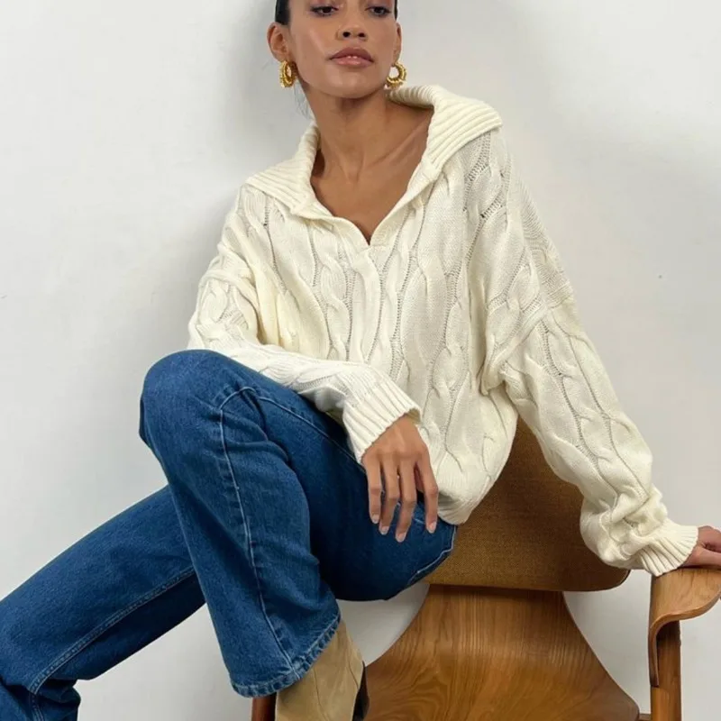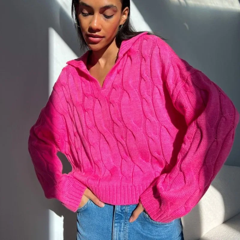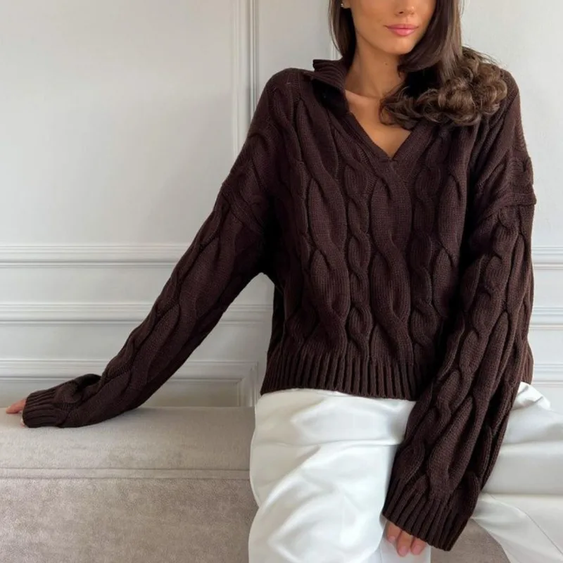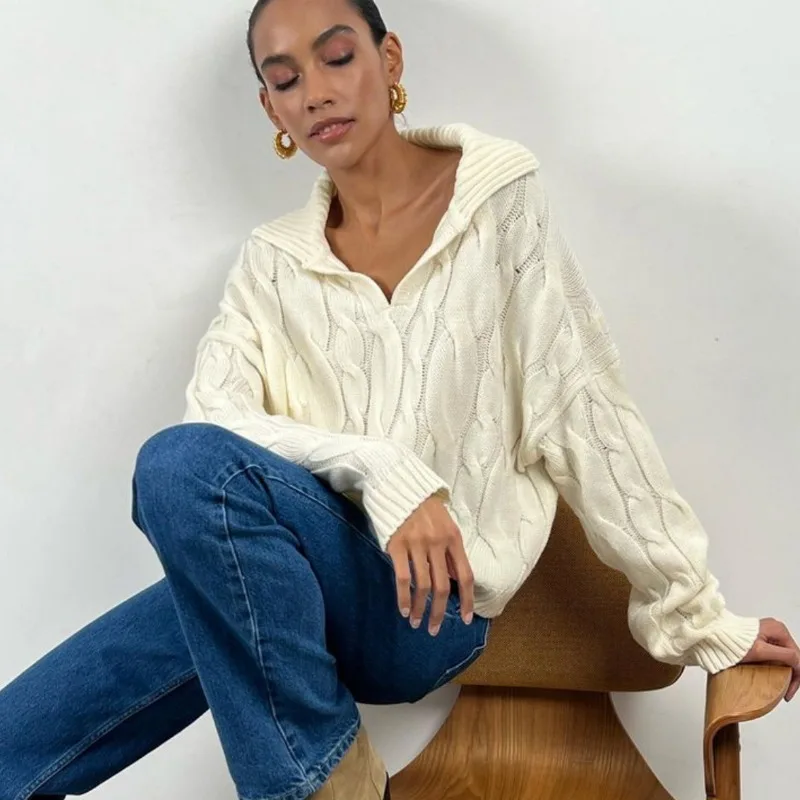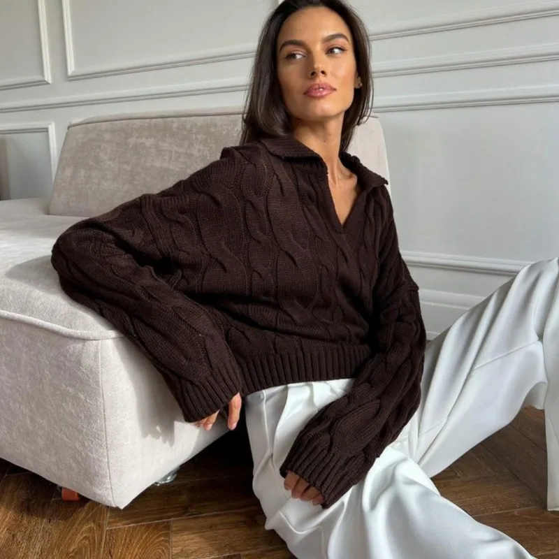 Tossy Loose Lapel Patchwork Sweater Pullover Female Solid Long Sleeve High Waist Y2k Top Knitwear Baggy Autumn Oversized Sweater