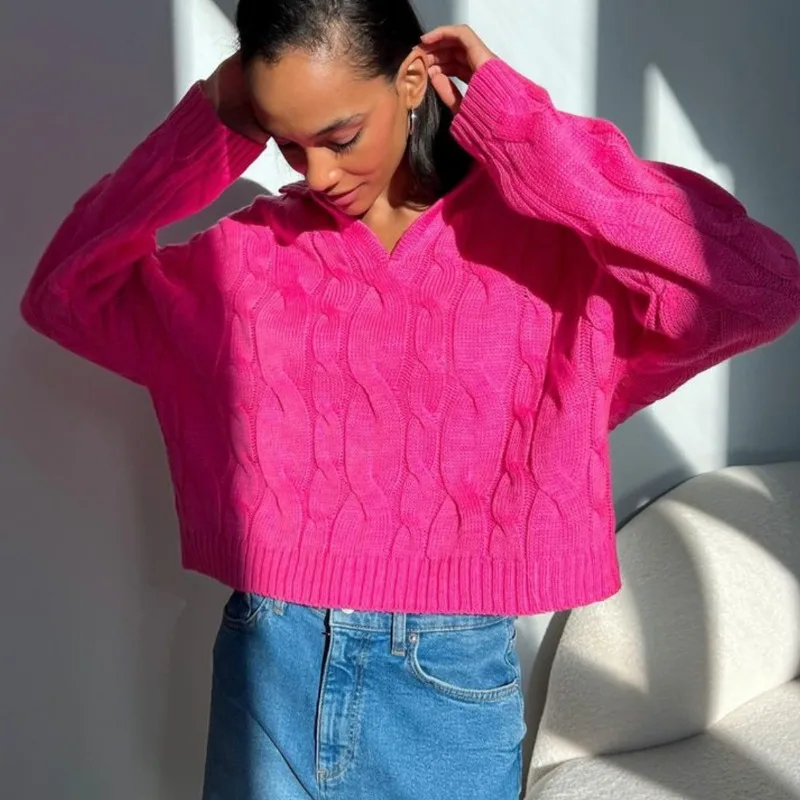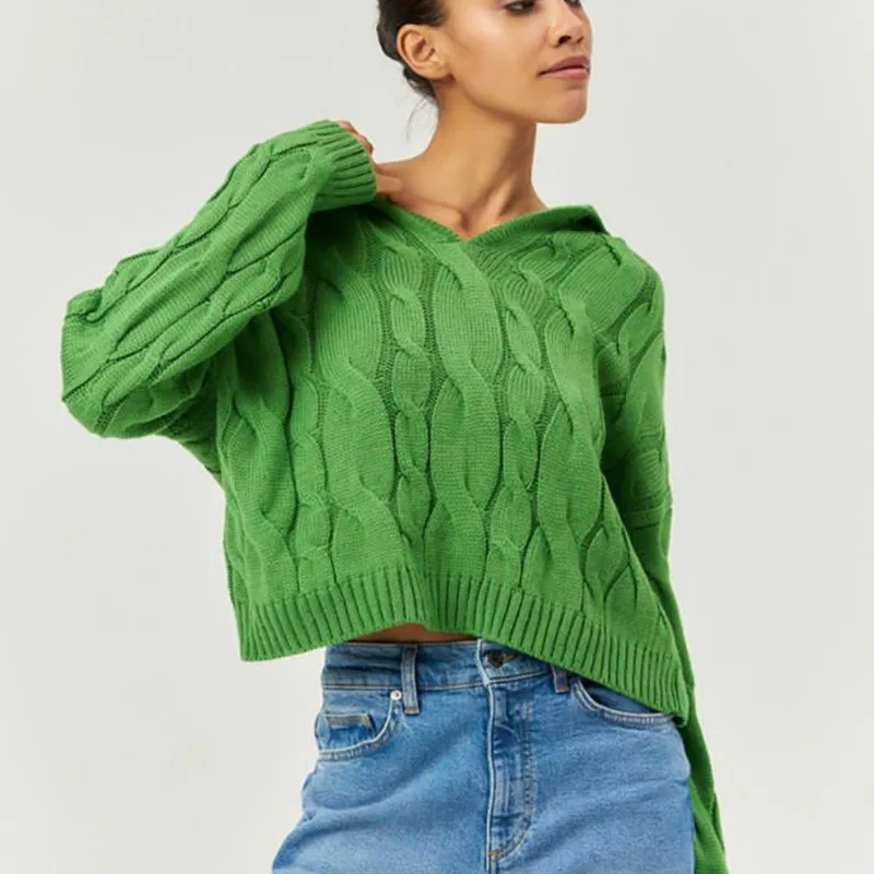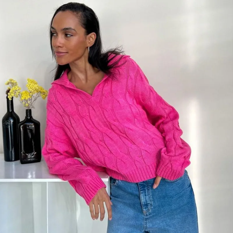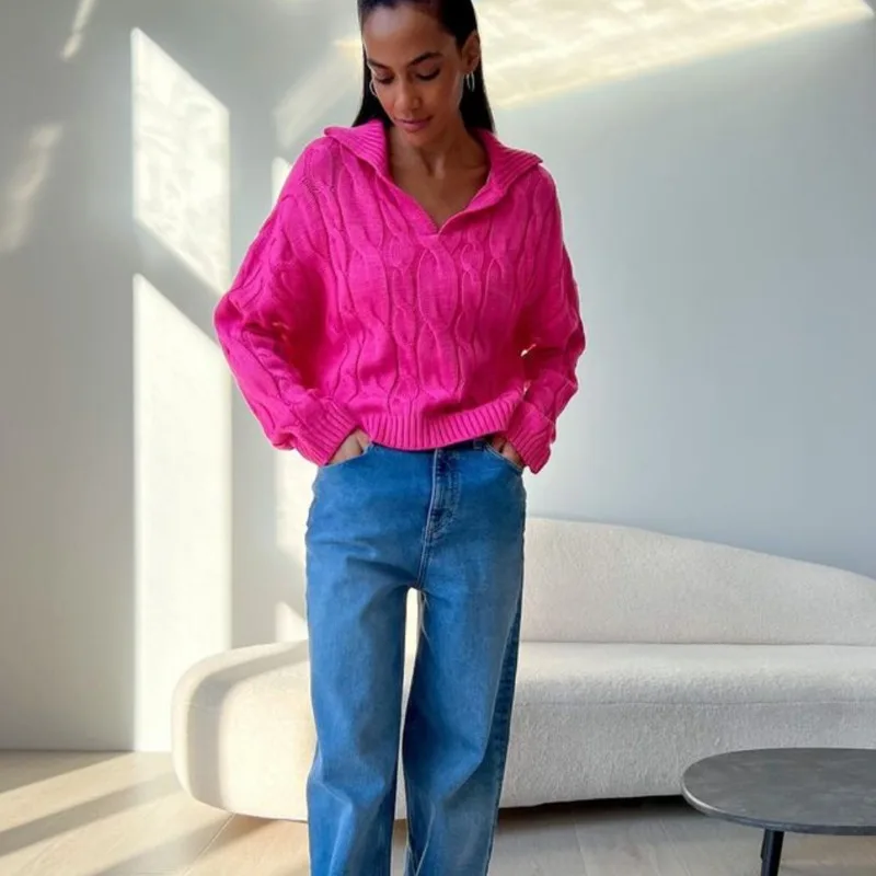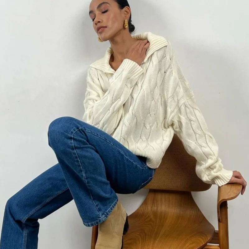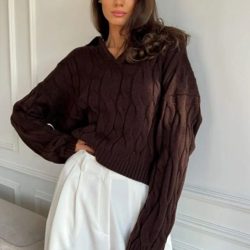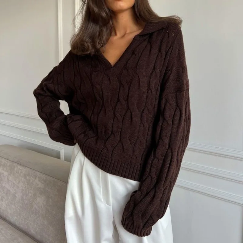 Tossy Loose Lapel Patchwork Sweater Pullover Female Solid Long Sleeve High Waist Y2k Top Knitwear Baggy Autumn Oversized Sweater