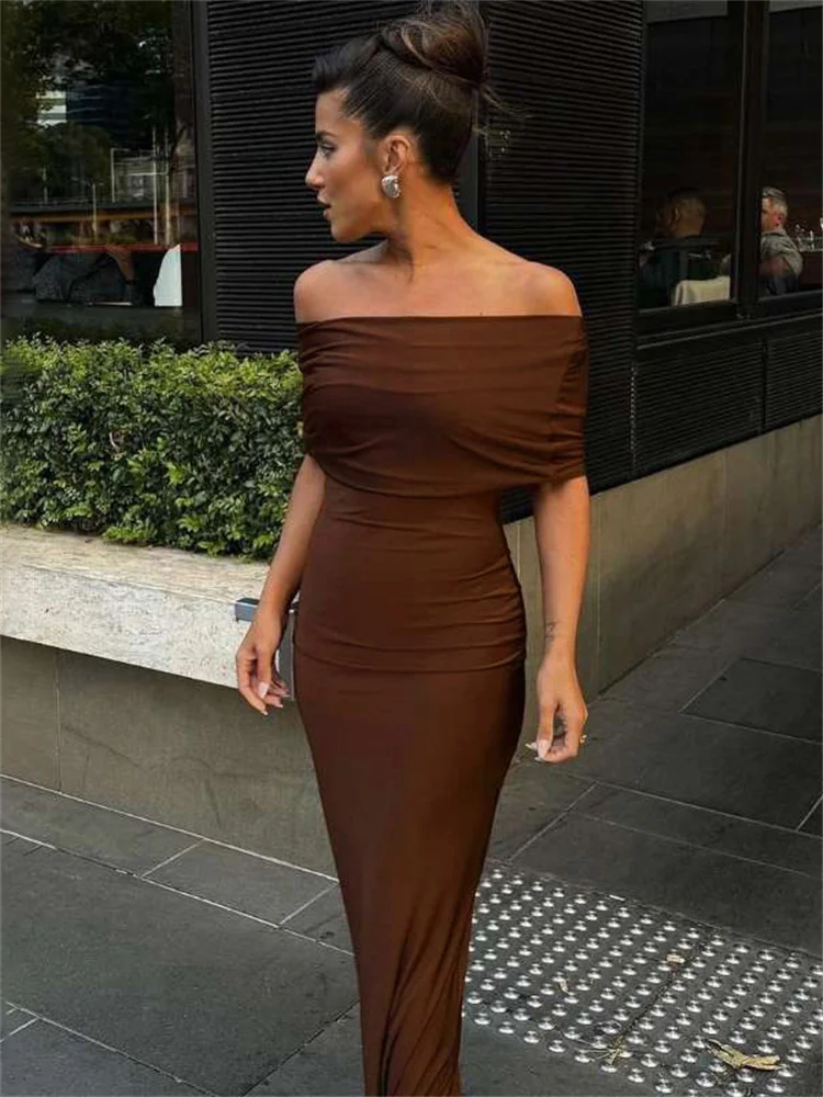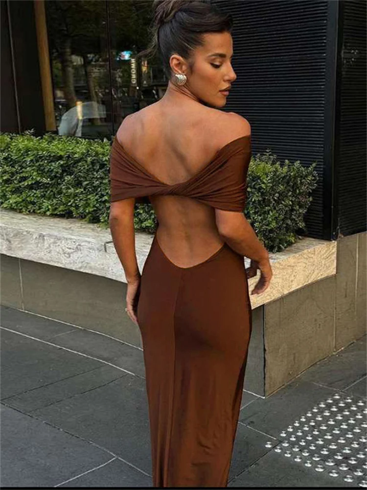 Tossy Pleated Off-Shoulder Elegant Long Dress For Women Twist Backless Patchwork Fashion Solid Party Dress Summer Maxi Dress New