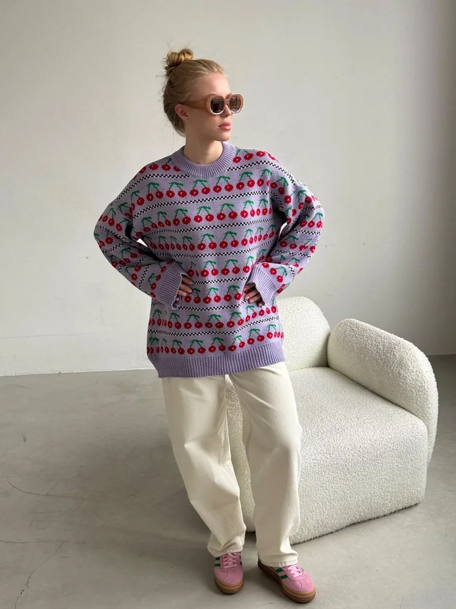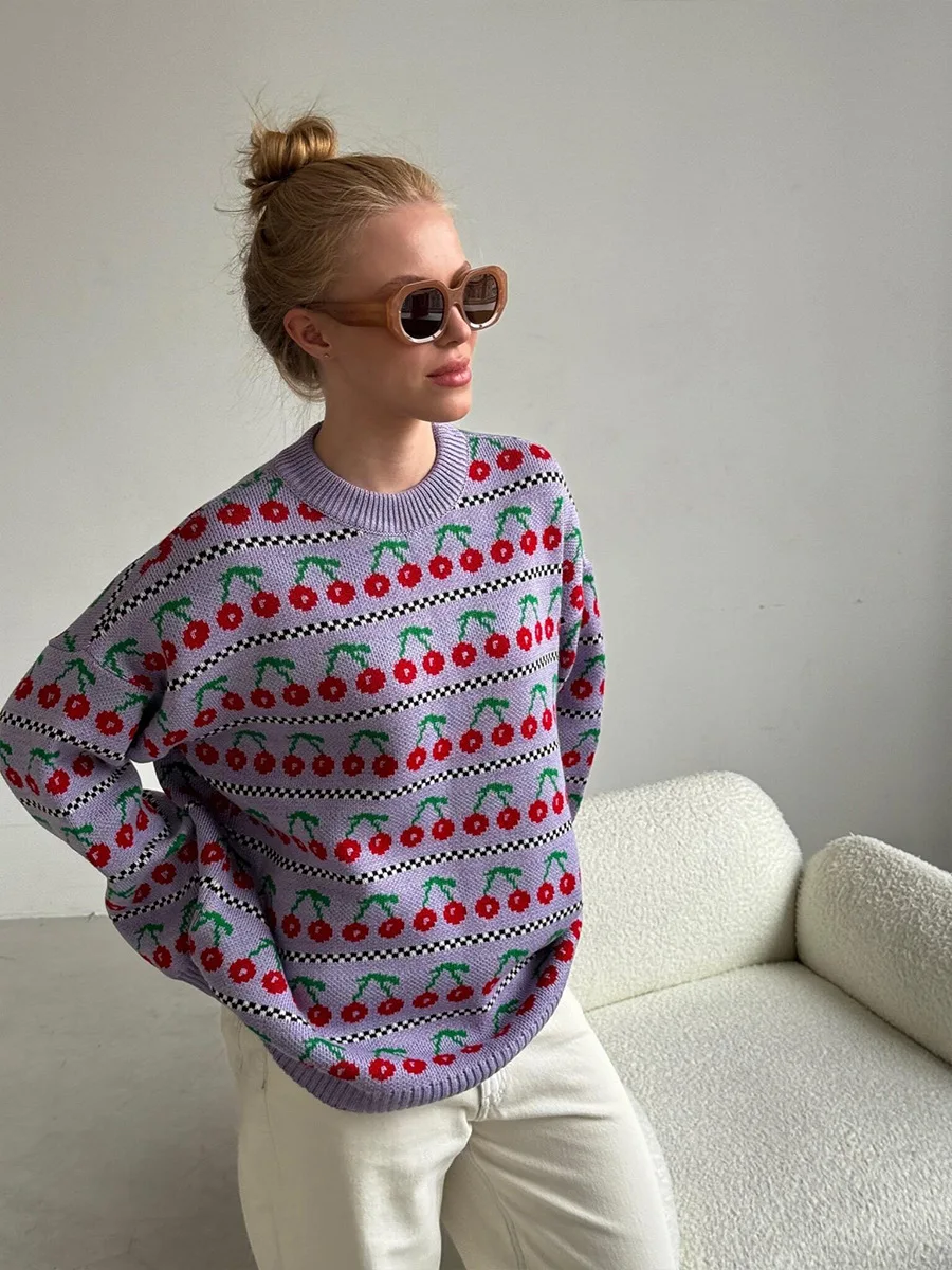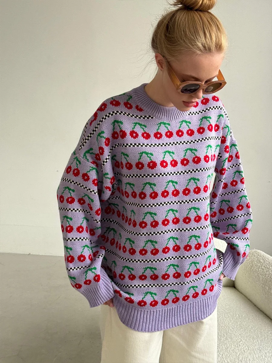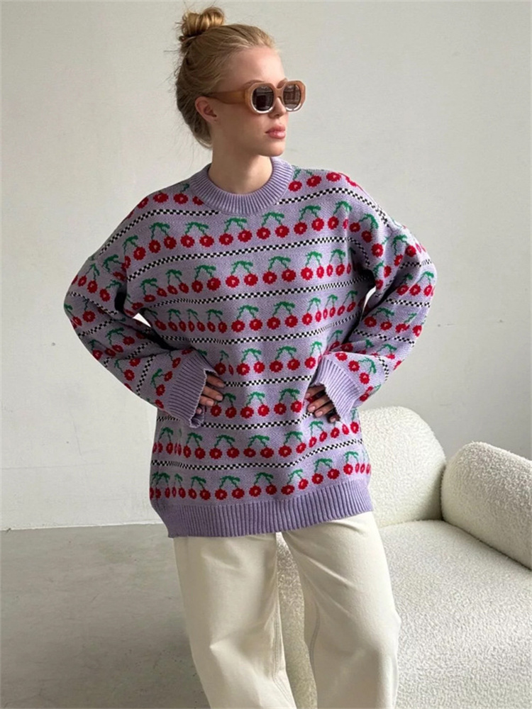 Tossy Printed Knit Sweater Pullover For Women Loose Patchwork Contrast Long Sleeve Vintage Fashion Top Knitwear Women’s Pullover