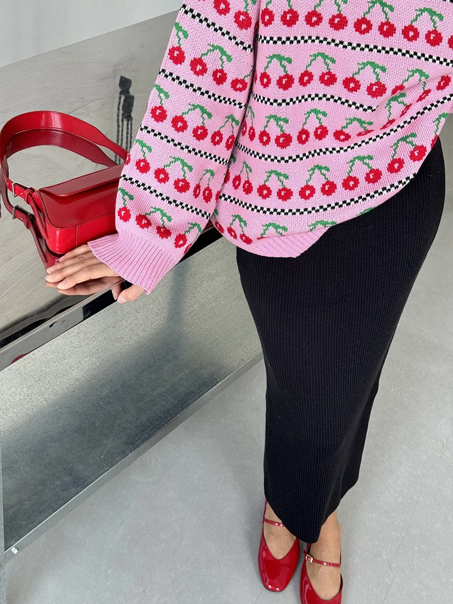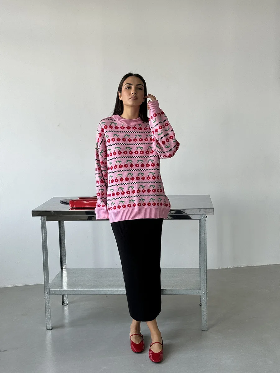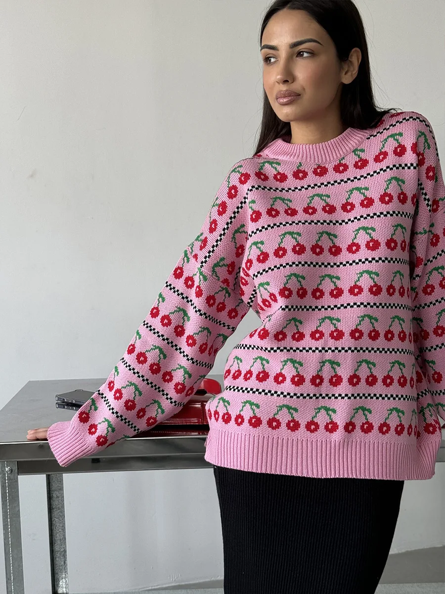 Tossy Printed Knit Sweater Pullover For Women Loose Patchwork Contrast Long Sleeve Vintage Fashion Top Knitwear Women’s Pullover