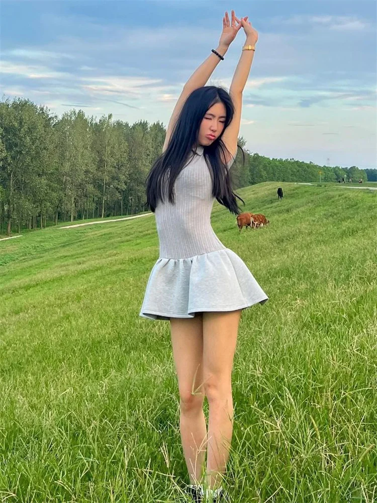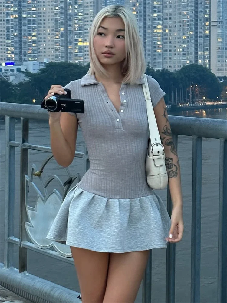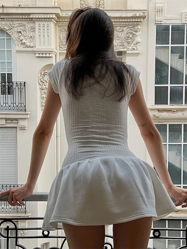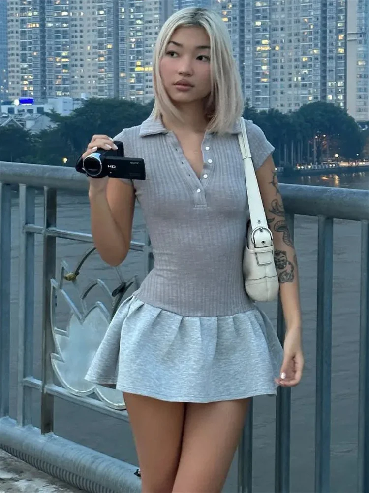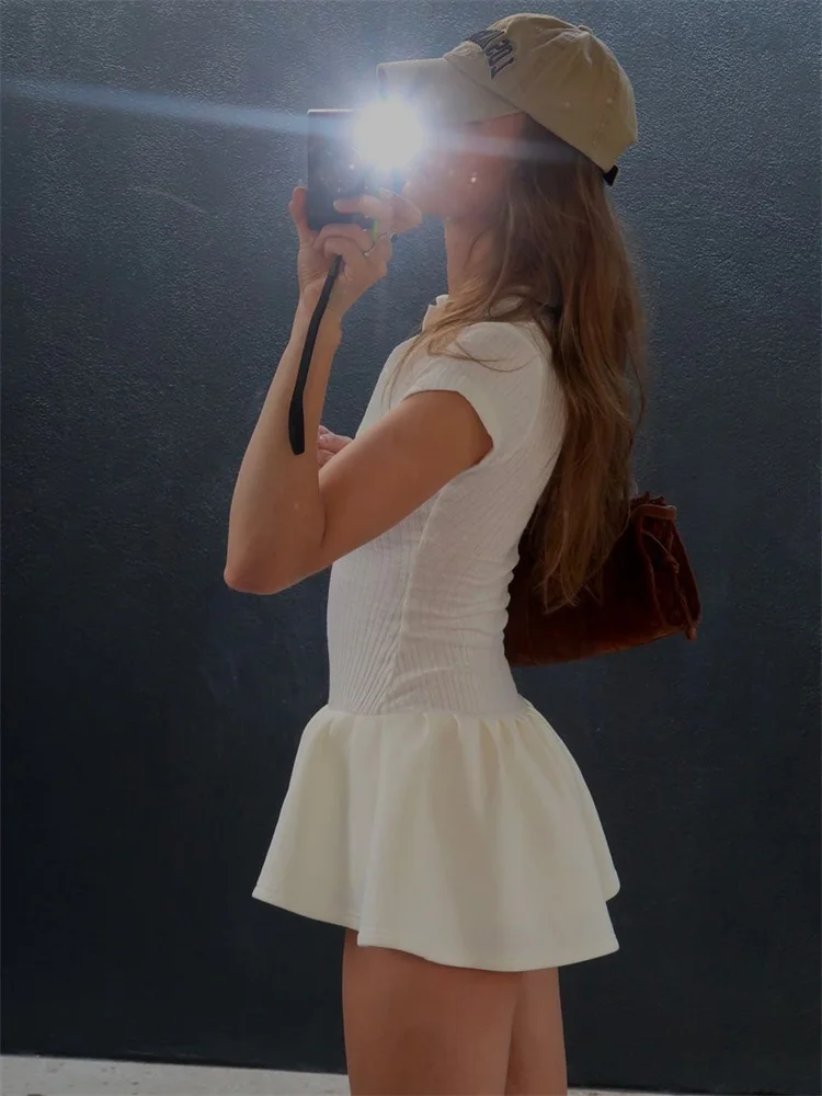 Tossy Ribbed Knit Fashion MIni Dress Women’s Short Sleeve Lapel High Waist Patchwork Commute Autumn Dress Female Bodycon Dress
