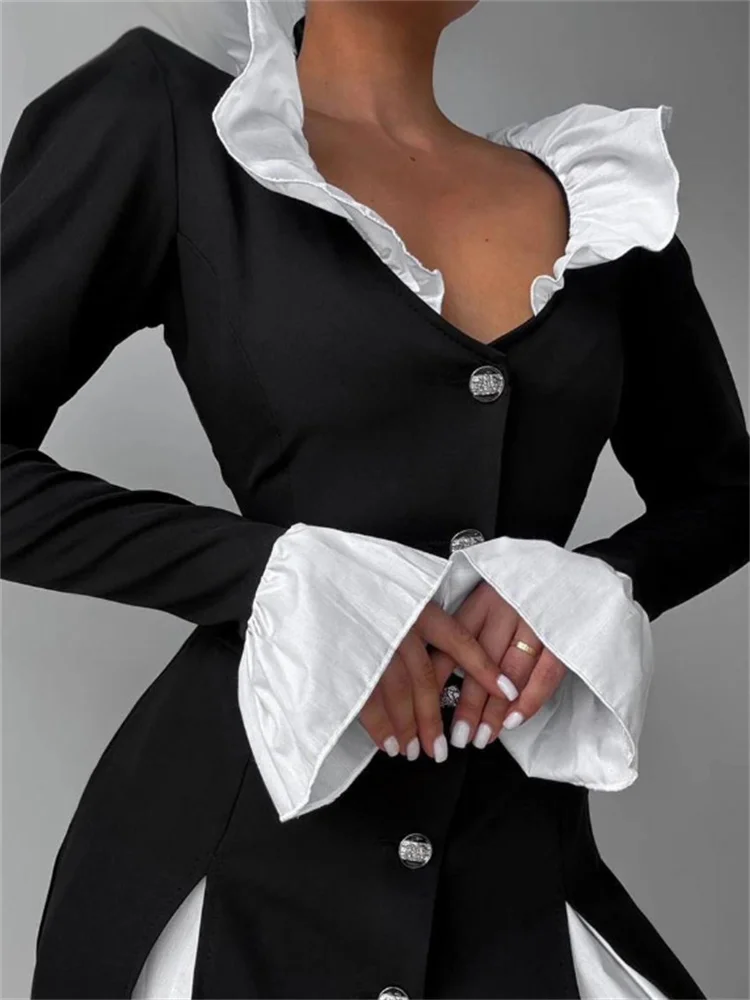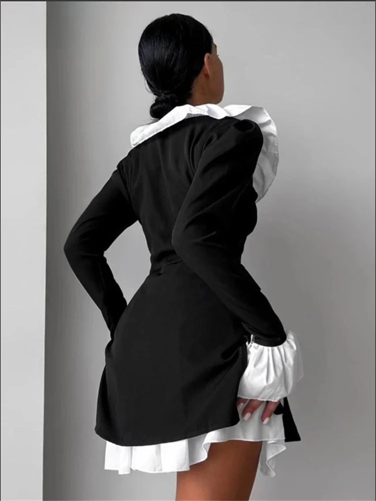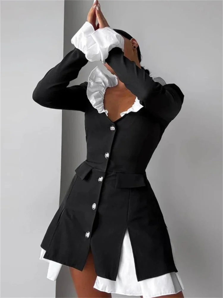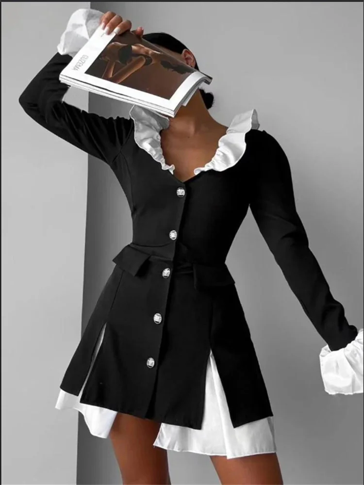 Tossy Ruffled Elegant Pocket Dress Female Pocket Shirts 2 Piece-Set Commute Clothes Autumn Patchwork Dress Women Contrast Dress