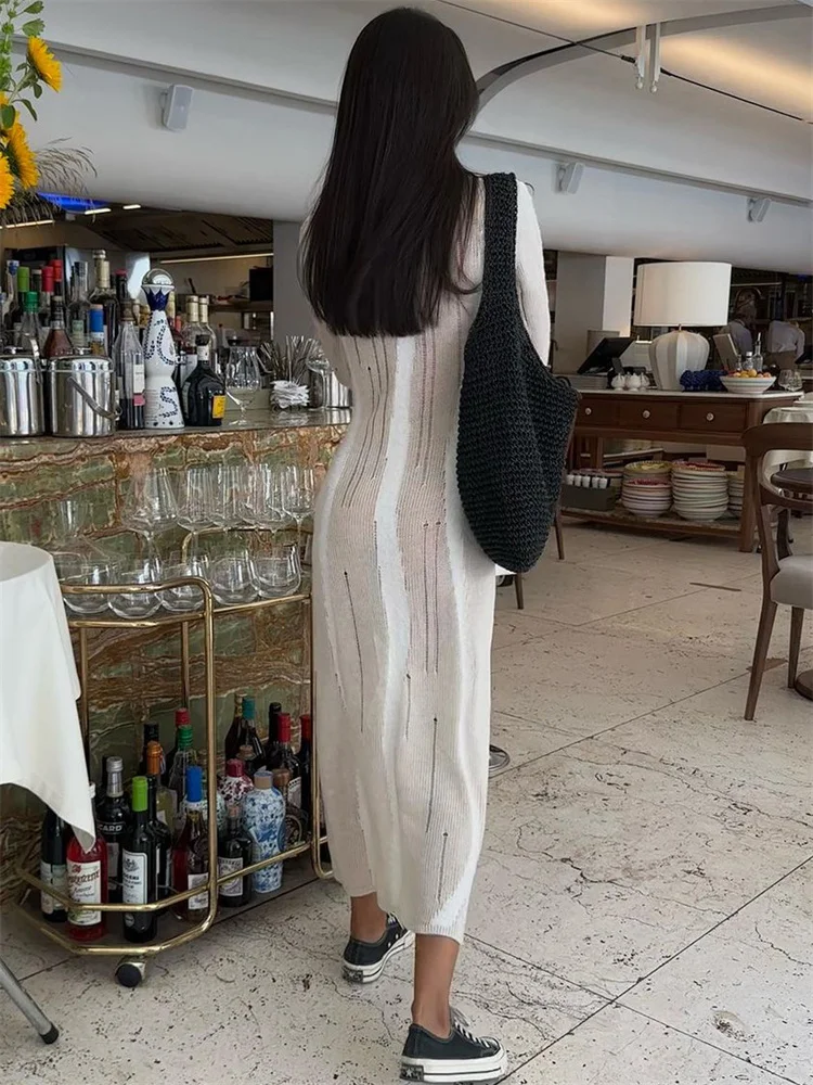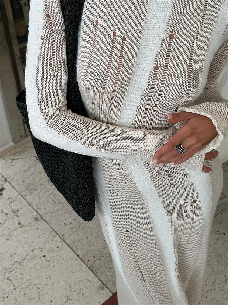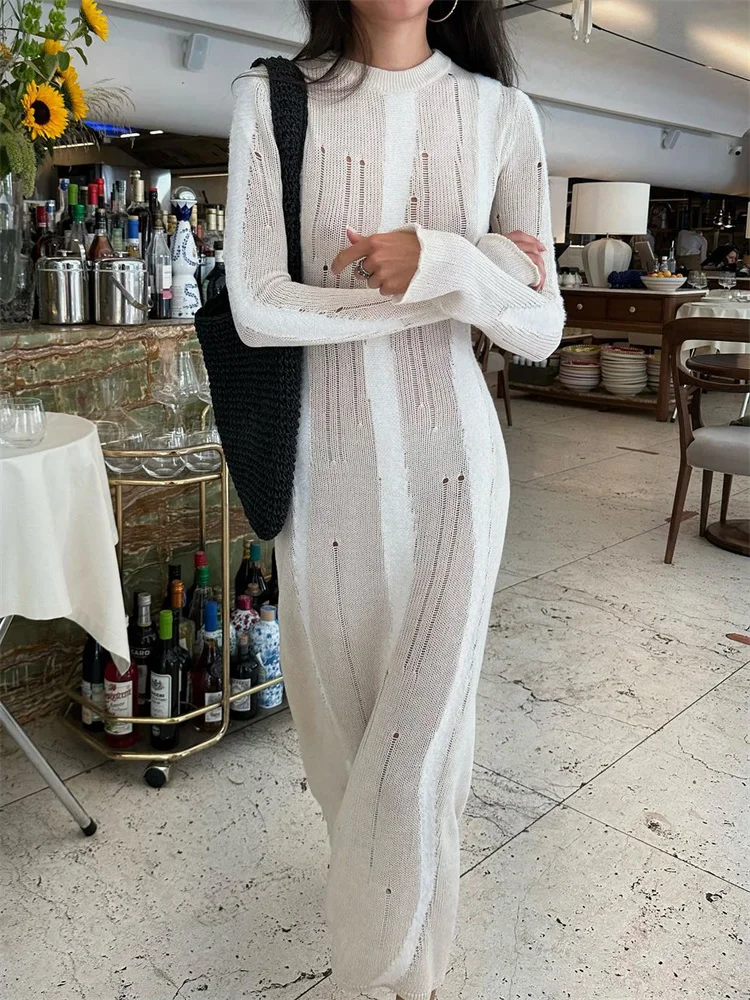 Tossy Sexy Hollow Out Knit Maxi Dress For Women Slim Elegant Fashion Long Sleeve Autumn 2023 Party Dress Female Knitwear Dress