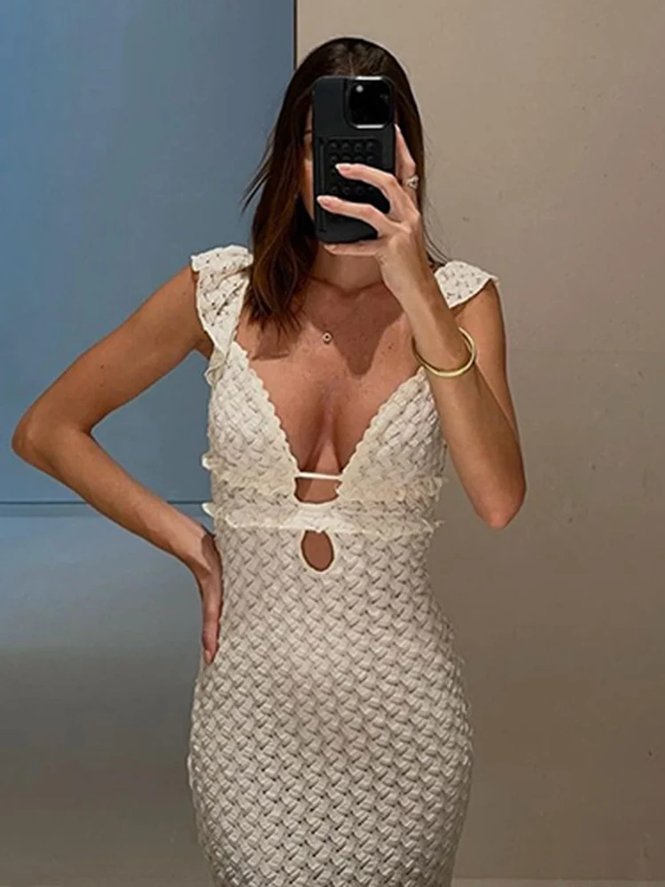 Tossy Sexy V-neck Knitted Hollow long Dress For Women Hip Wrap Sleeveless Fashion Solid Evening Party Maxi Knitwear Dress 2024