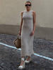Tossy Striped See-Through Long Dress Female Elegant Sleeveless High Waist Patchwork Fashion Beach Dress Knit Maxi Dress Summer
