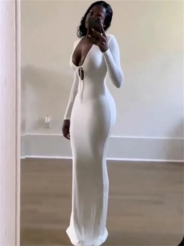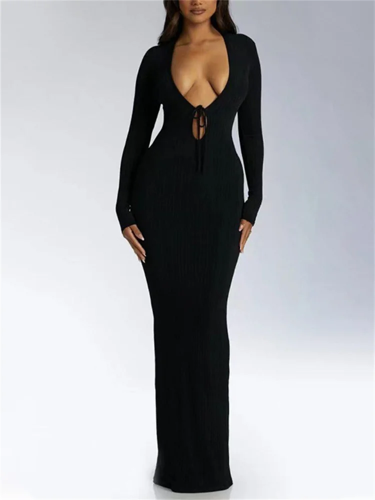 Tossy V-Neck High Waist Slim Maxi Dress Female Solid Bandage Elegant Fashion Long Sleeve Sexy Party Dress Summer Long Dress 2024