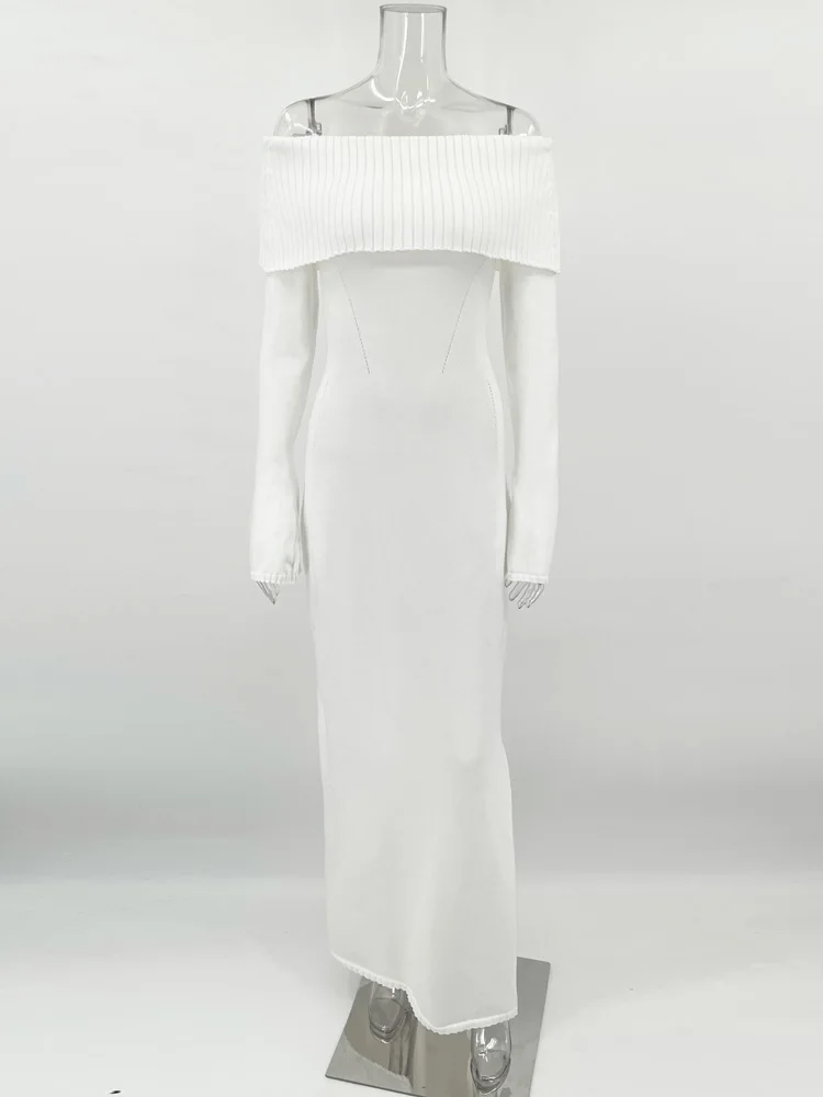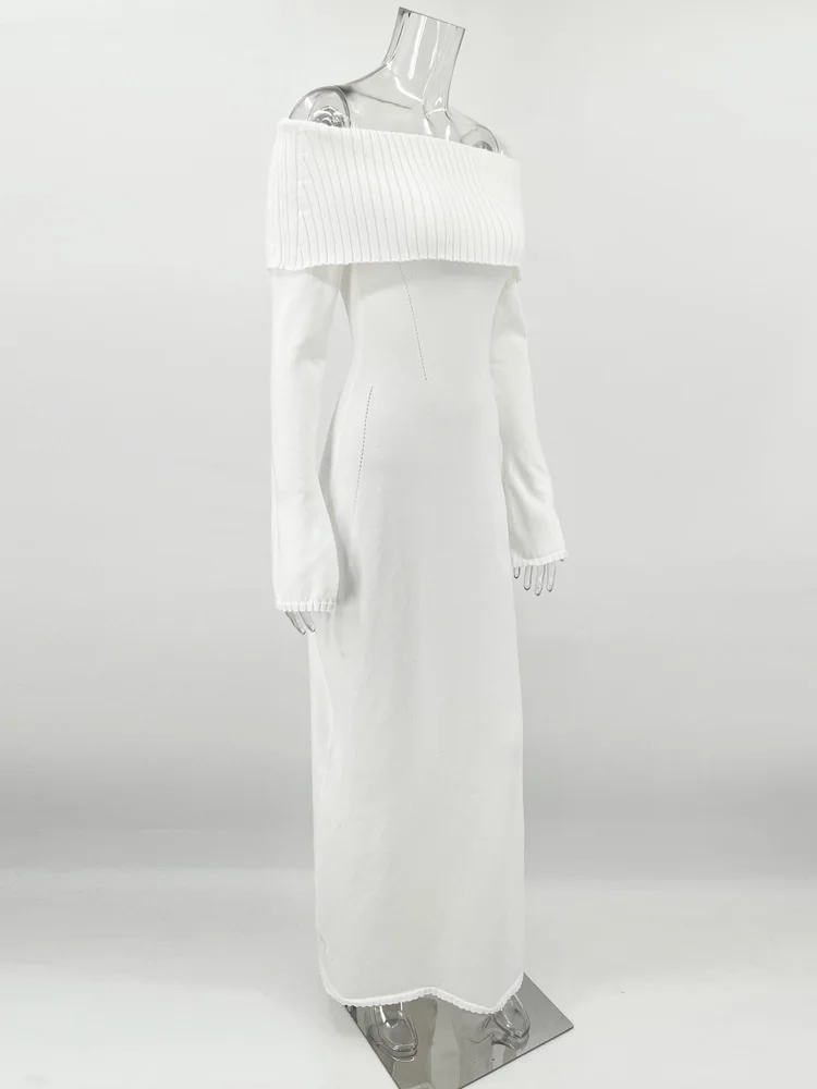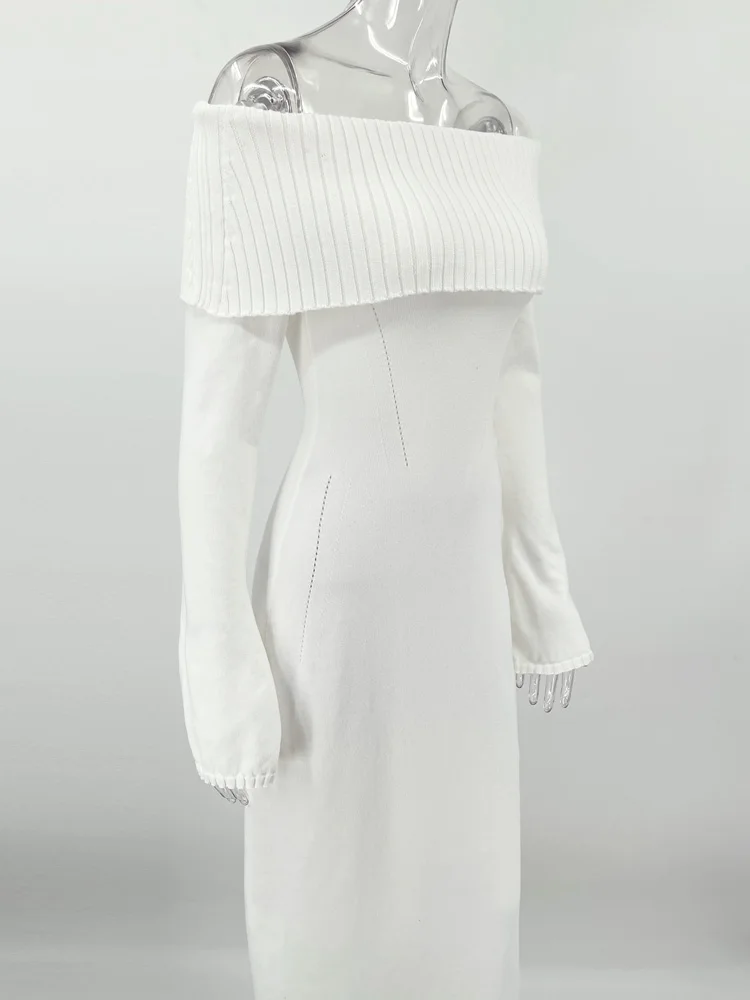Tossy White Autumn Knit Sweater Long Dress Women Ribbed High Waist Fashion Off-Shoulder Loose Party Dress Female Knitwear Dress