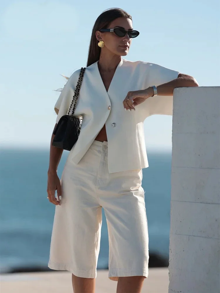 Tossy White Knit Sweater Cardigan Female Slim V-Neck Short Sleeve Patchwork Elegant Outwear Top Solid Knitwear Y2k Coat Women’s