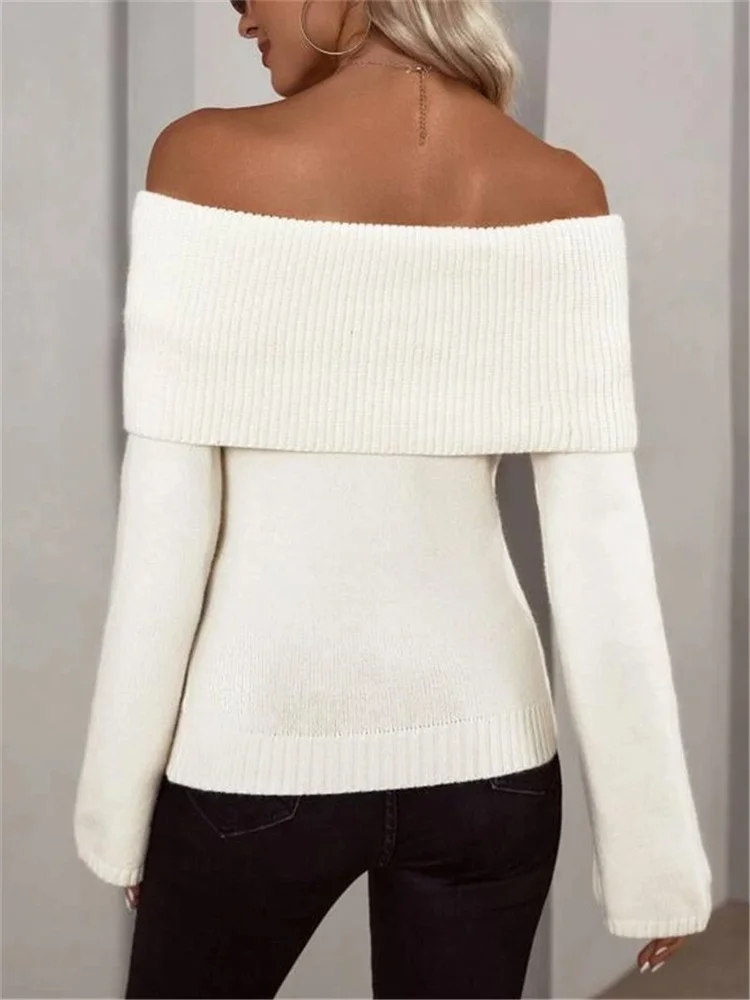 Tossy White Knit Sweater Pullover Female Off-Shoulder Slim Fashion Long Sleeve High Waist Backless Loose Knitwear Streetwear New