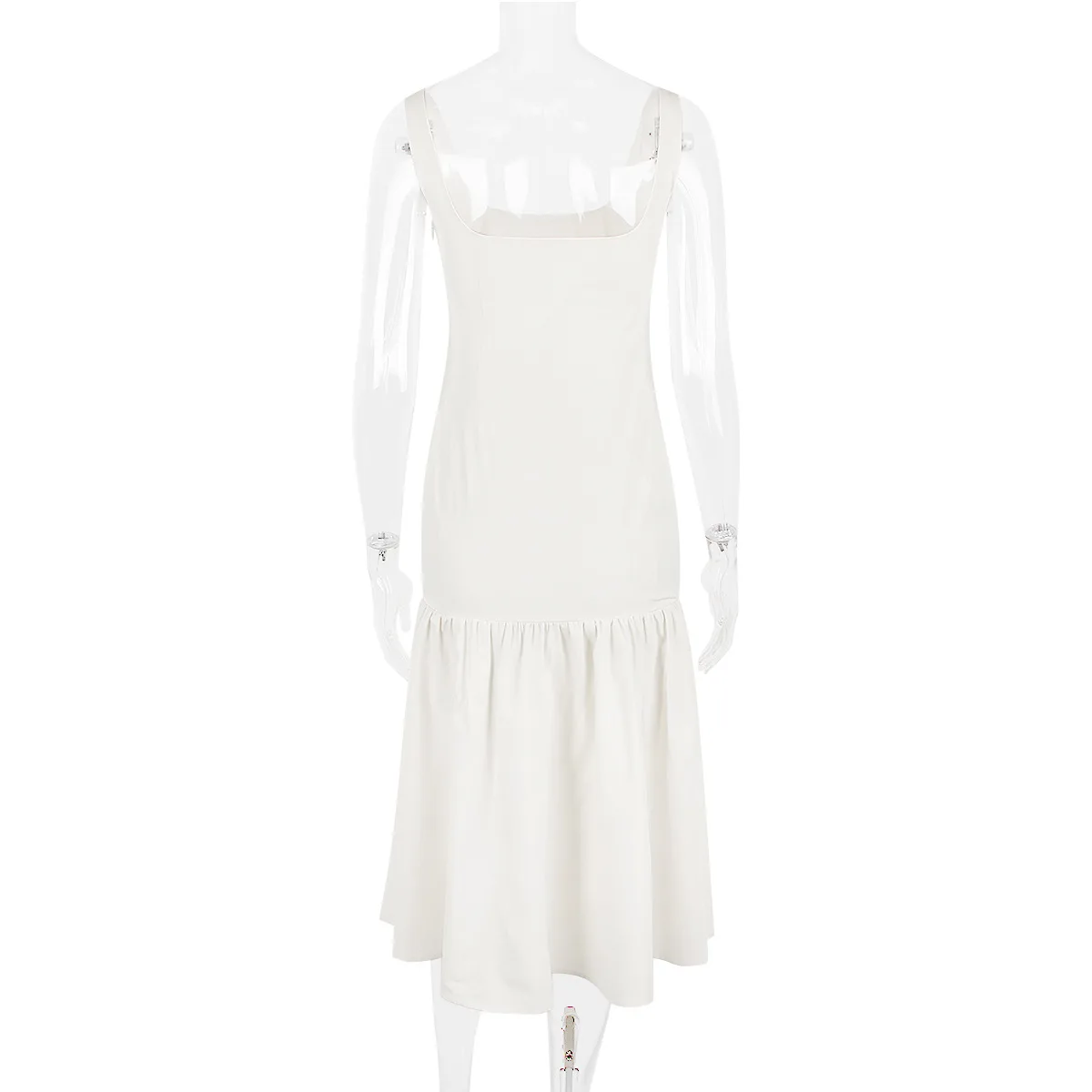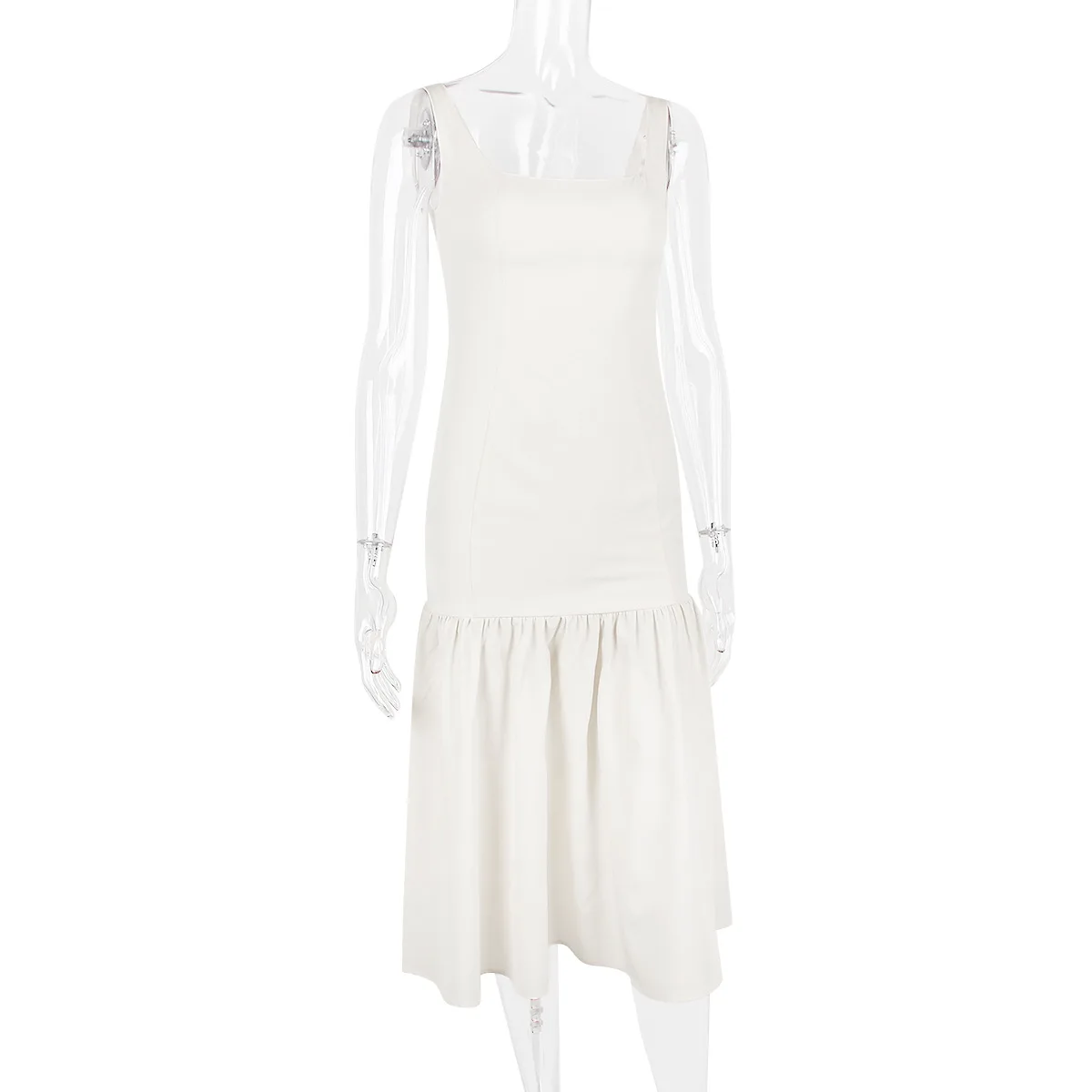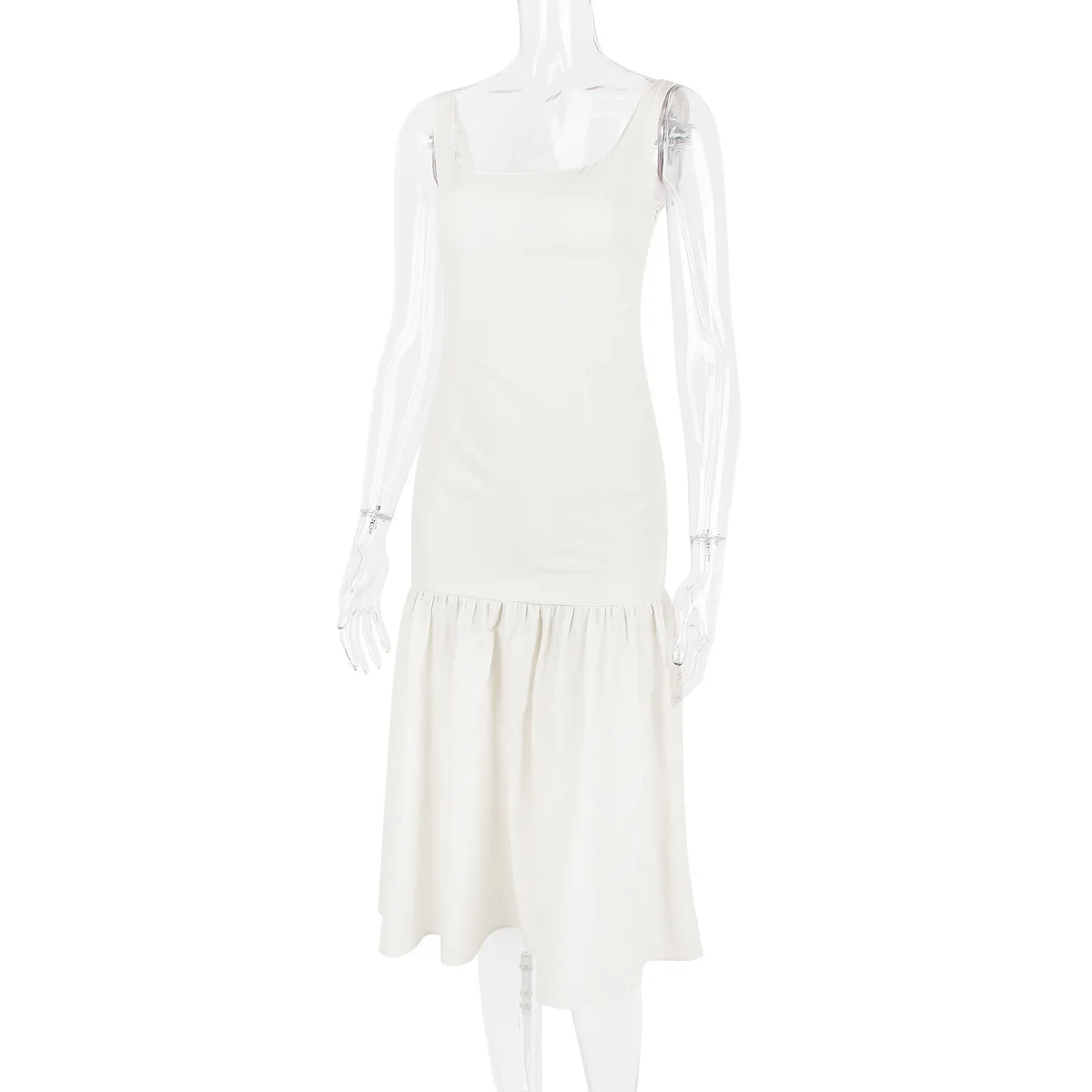 Tossy White Ruffled Patchwork Maxi Dress Female Fashion Slim High Waist Backless Pleated Summer Strapless Female Long Dress 2024