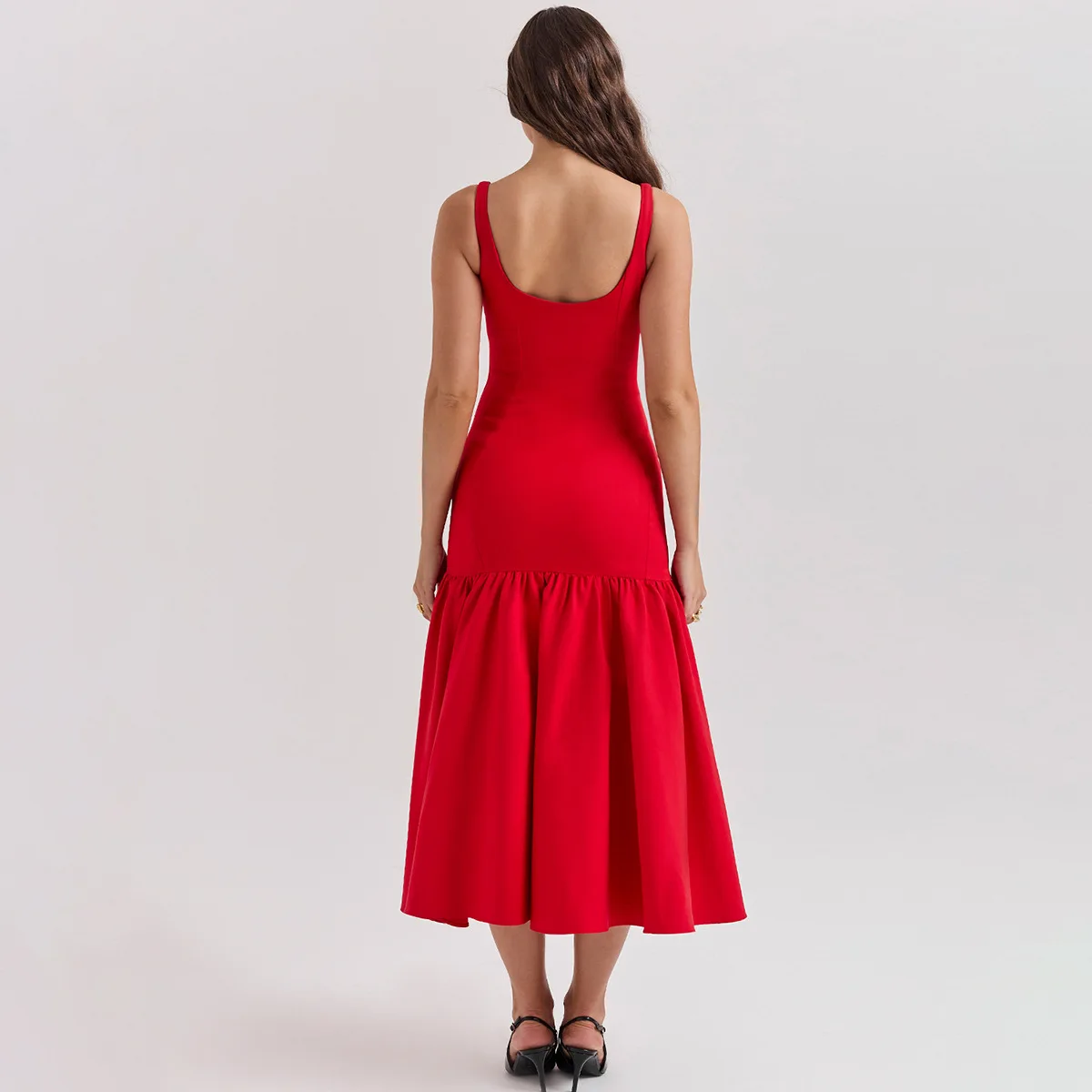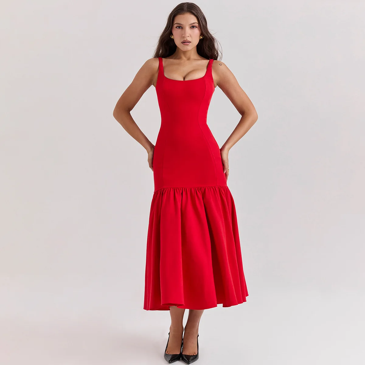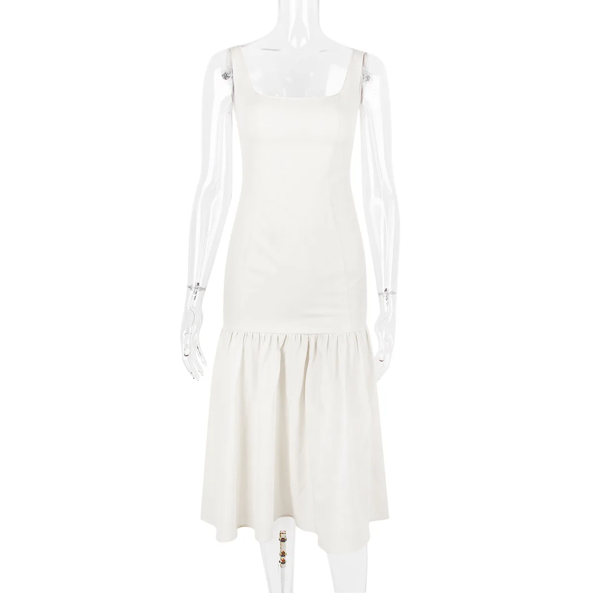 Tossy White Ruffled Patchwork Maxi Dress Female Fashion Slim High Waist Backless Pleated Summer Strapless Female Long Dress 2024