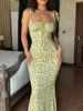 Tossy Women Flowers Suspender Dress Hip Wrap Elegant Sexy Sleeveless Backless Slim Female Beach Evening Party Bodycon Dress 2024